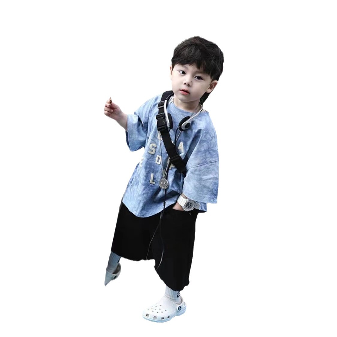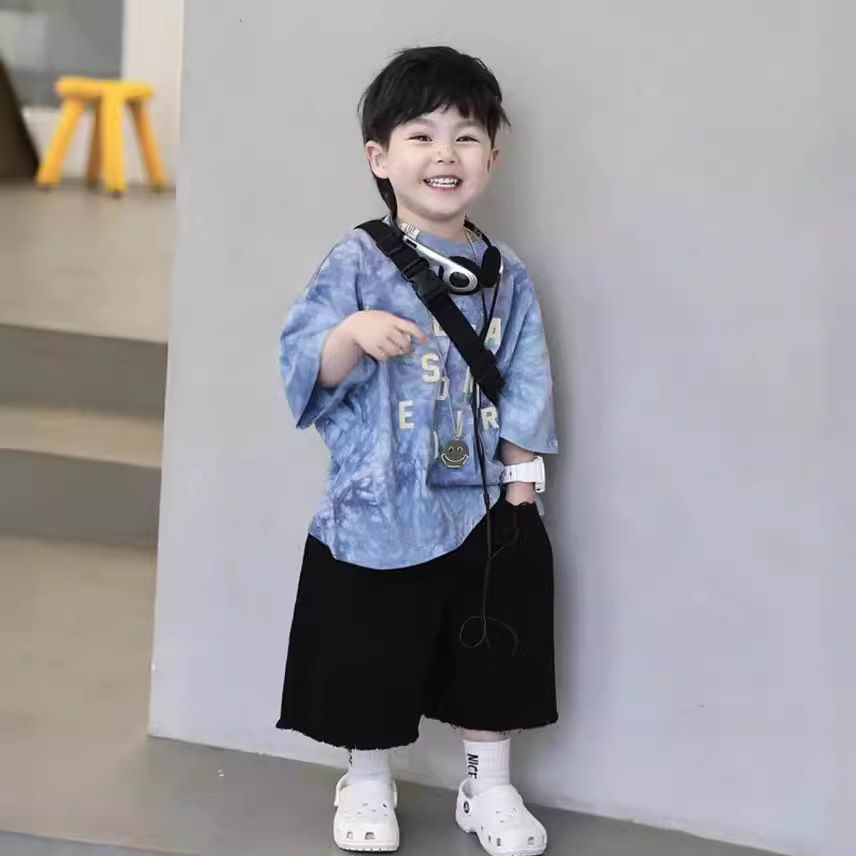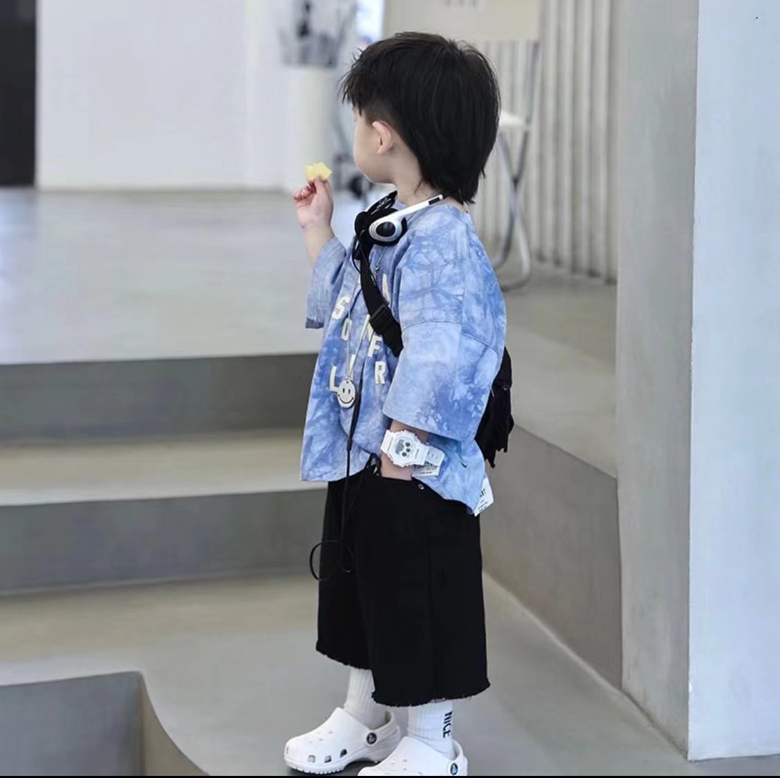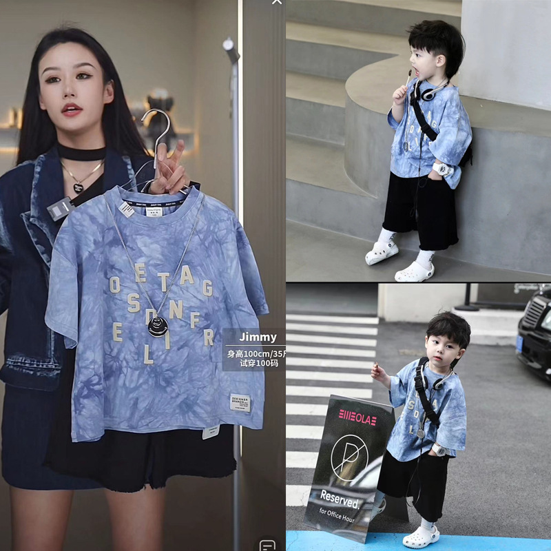 | nameOriginal | Tiktok same style 2023 new tie-dyed sky blue short-sleeved T-shirt parent-child clothes size children's clothing family three four T |