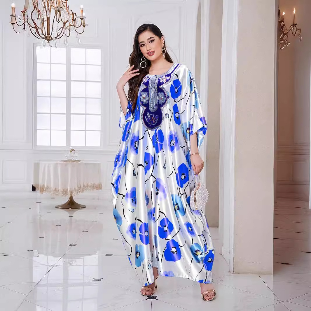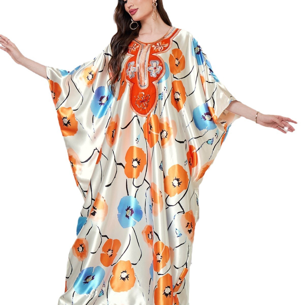 | nameOriginal | tiktok2024 European, American and African Embroidered Beadlet Printed Loose Gown with Turban plus size Robe dress |