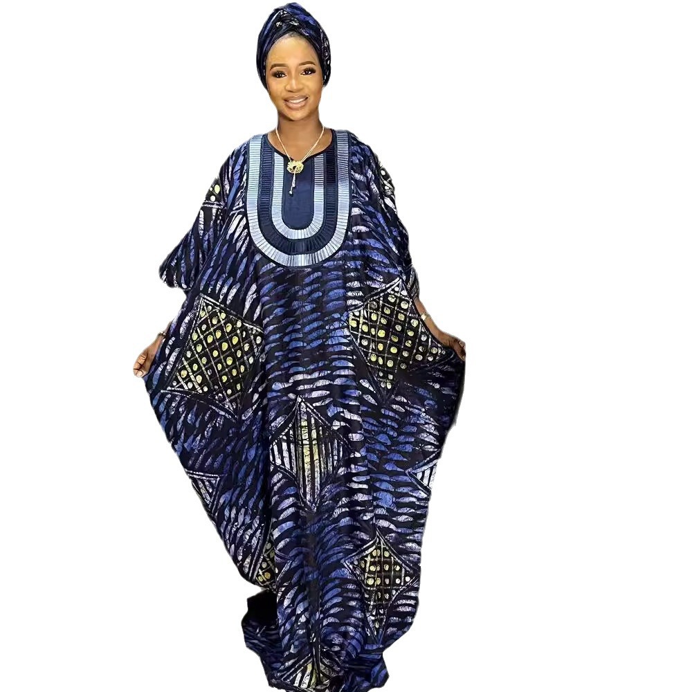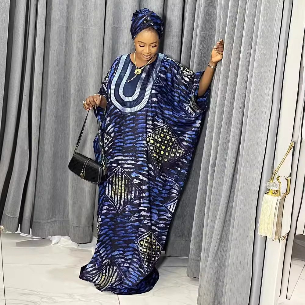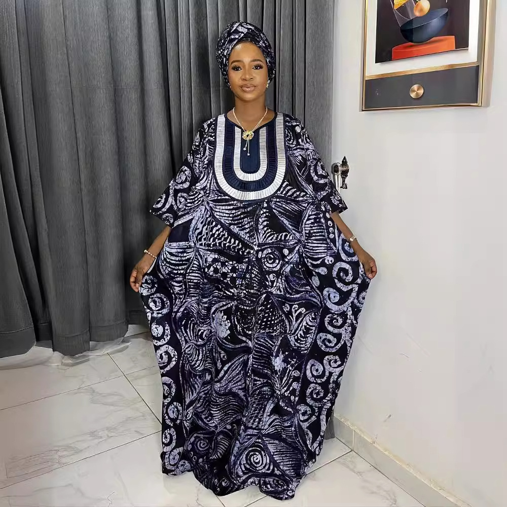 | nameOriginal | tiktok2024 European and American African embroidered printed loose robe with headscarf plus size robe dress women |