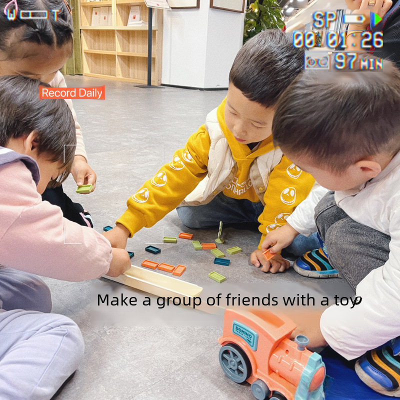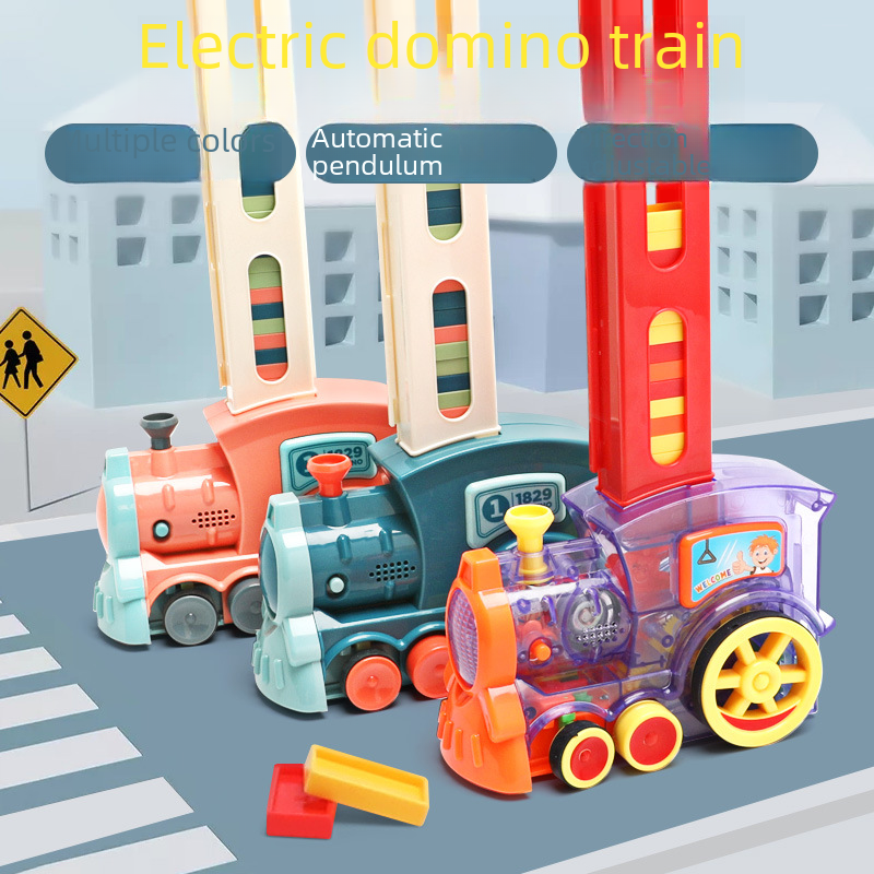 Tiktok’s same Domino car puzzle automatic delivery and licensing Electric building blocks small train toys wholesale