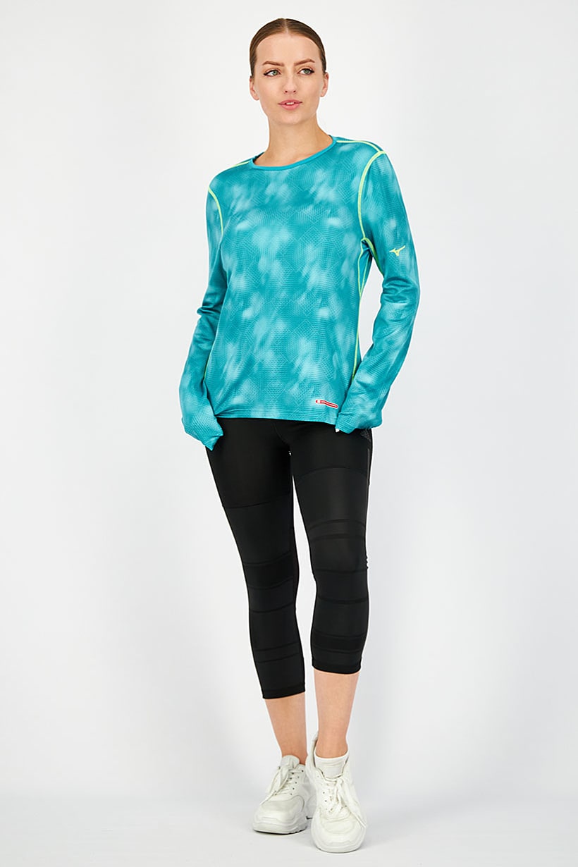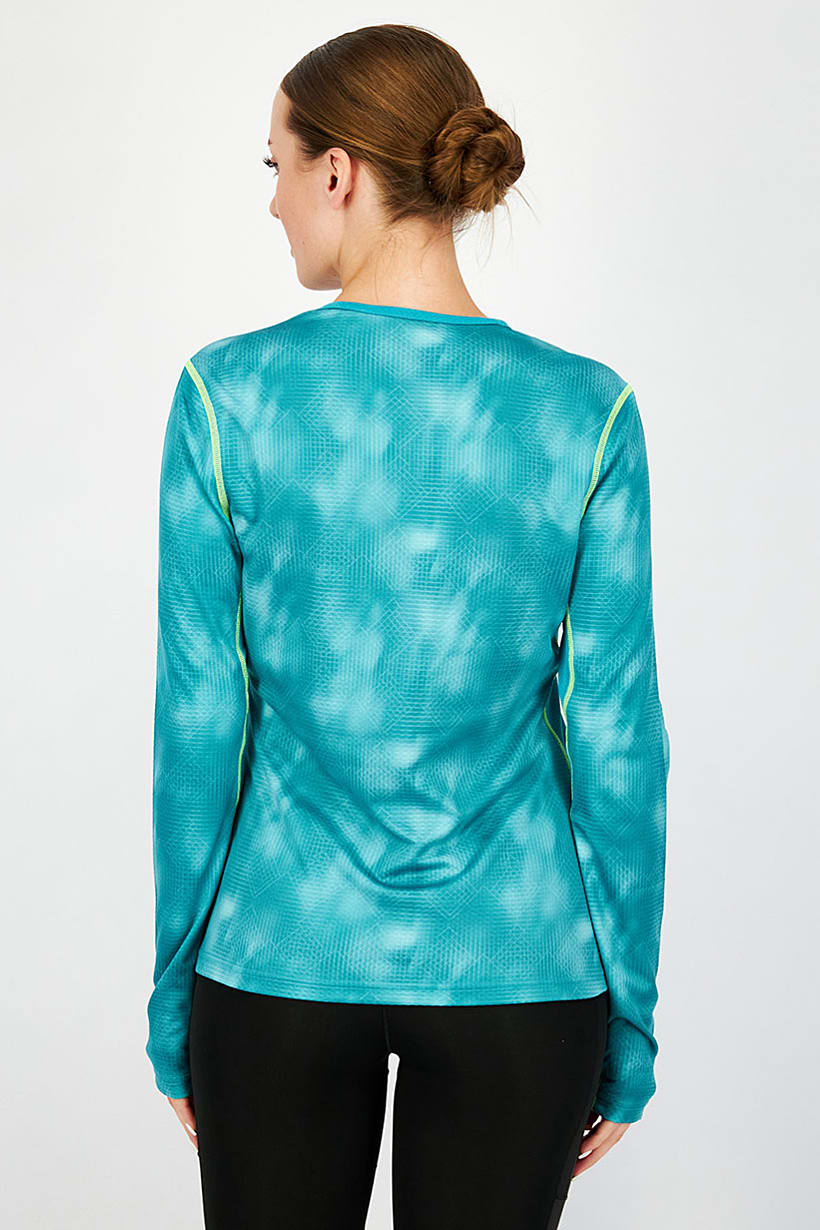 Tile Blue Textured Long Sleeve Women’s Tee with Round Neck.