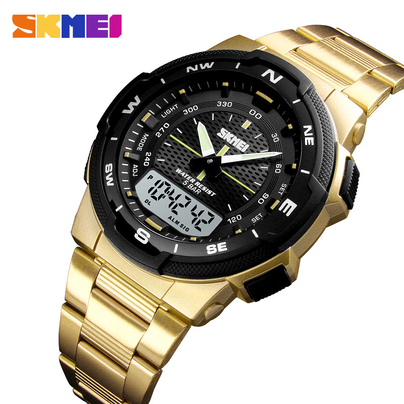 | nameOriginal | Time beauty/skmei Dual Display Watch multi-functional dual time outdoor sports waterproof steel band Men's electronic watch |