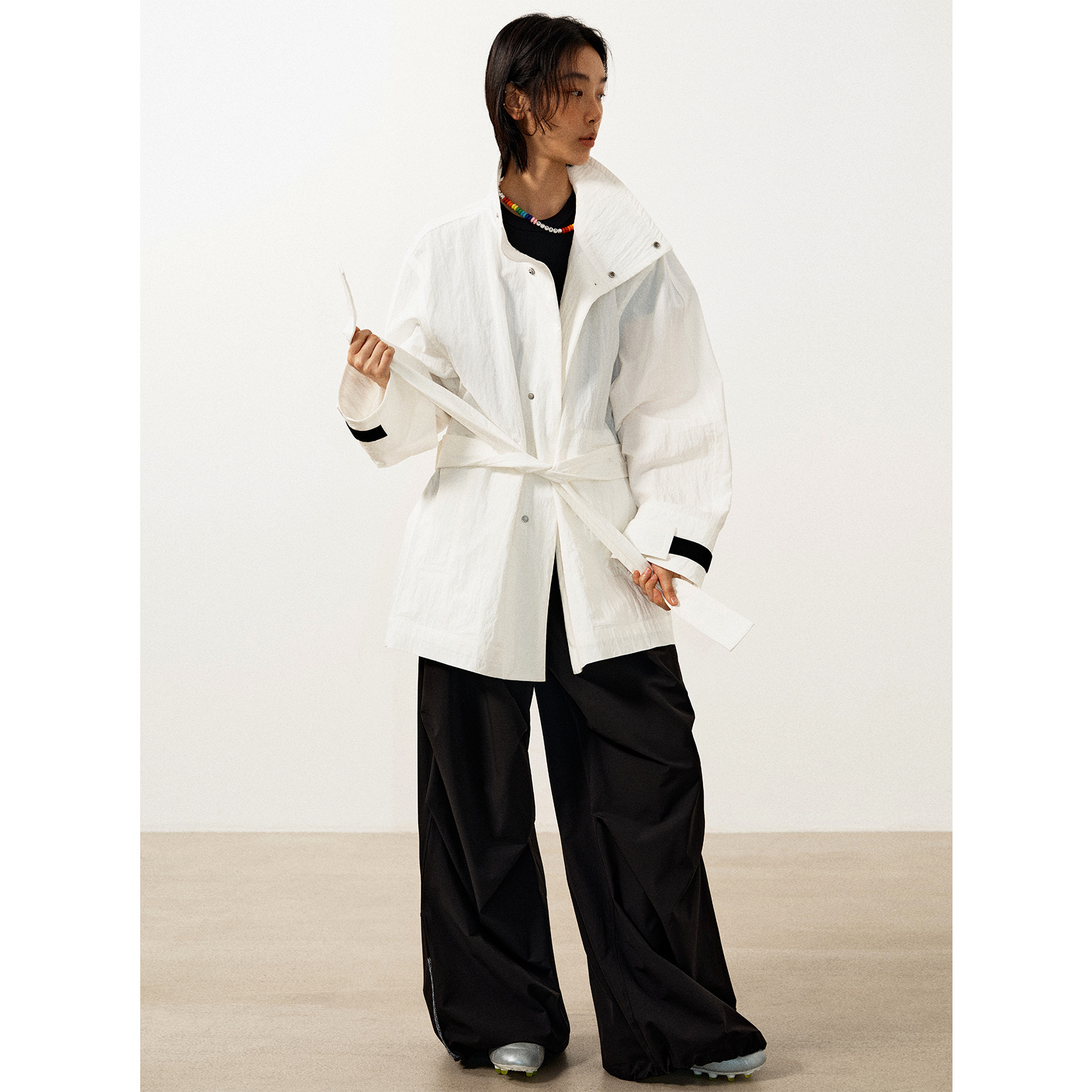 | nameOriginal | [Time of knowing] new texture long sleeve loose single-breasted stand collar lace-up waist windproof windbreaker coat V6230 |