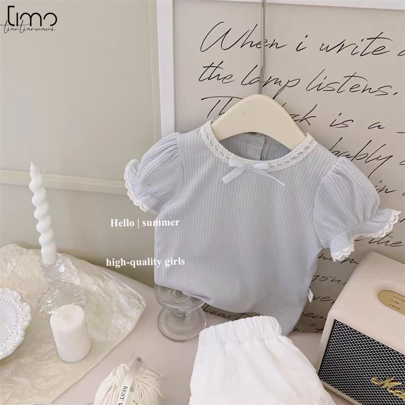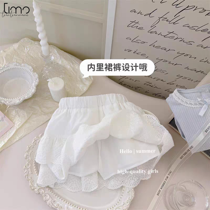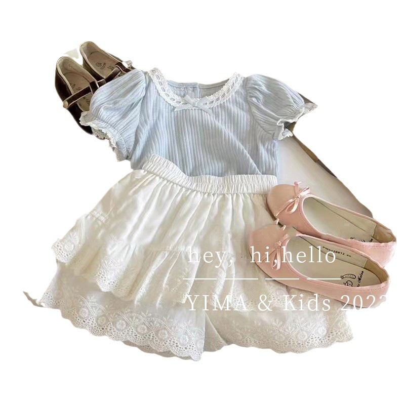 TIMO Han Fan Women’s Children’s Fashion Suit Summer Children’s Chanel Style Cotton Short-sleeved T-shirt Two-piece Trendy Skirt Set