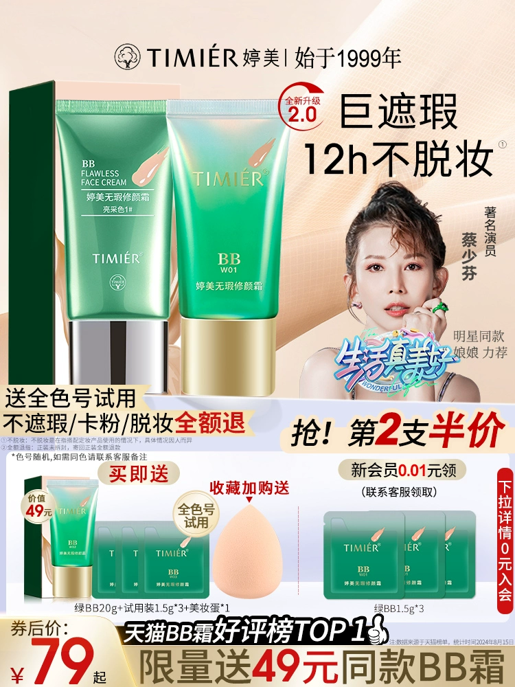 | nameOriginal | Tingmei bb cream concealer does not take off makeup waterproof and sweat-proof long-lasting moisturizing women's brand flagship store official authentic liquid foundation |