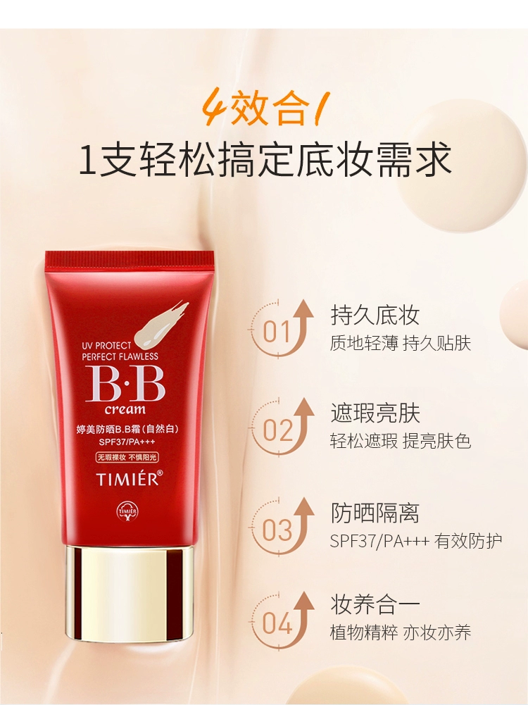 | nameOriginal | Tingmei BB Cream Sunscreen Isolation Concealer Three-in-One Moisturizing Liquid Foundation Brightens Skin Color Waterproof Long-lasting No Makeup Removal |