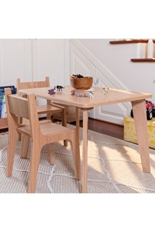 The Tiny Mouse Wooden Table and Chair Set is manufactured using exotic plywood. Plywood has both a standard strength and a structure that is protected against water. For a warm look, plywood made of exotic trees is also used.