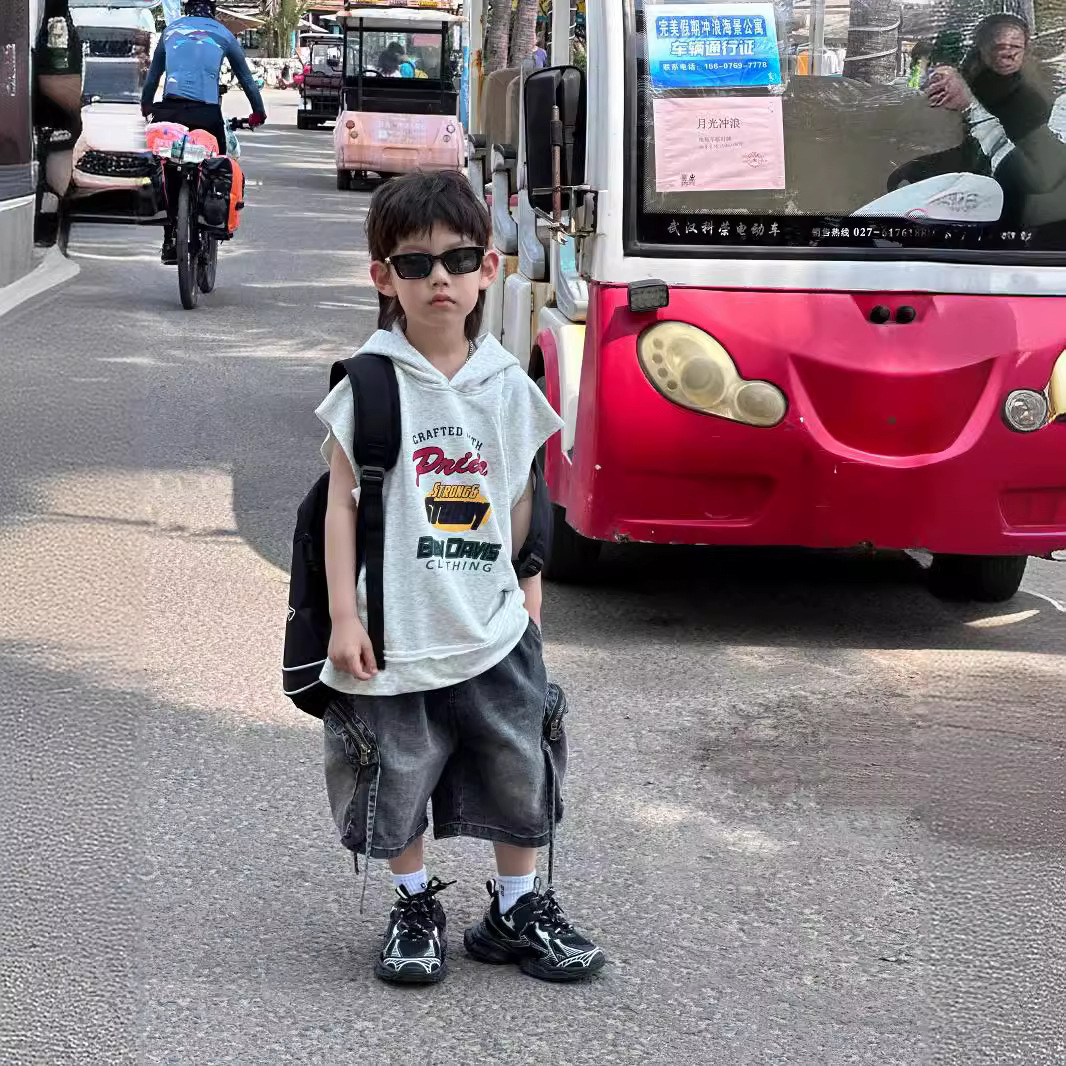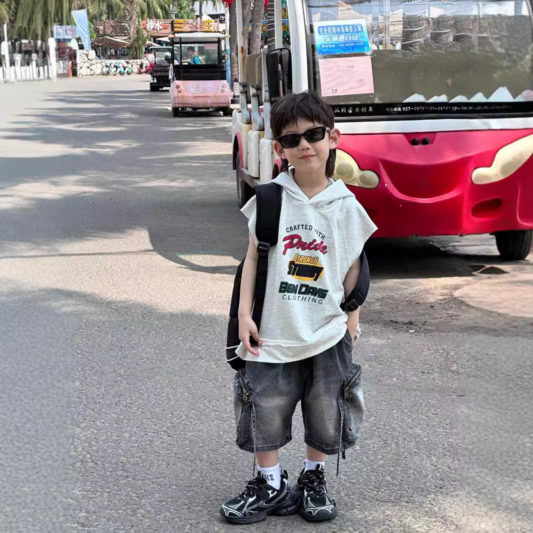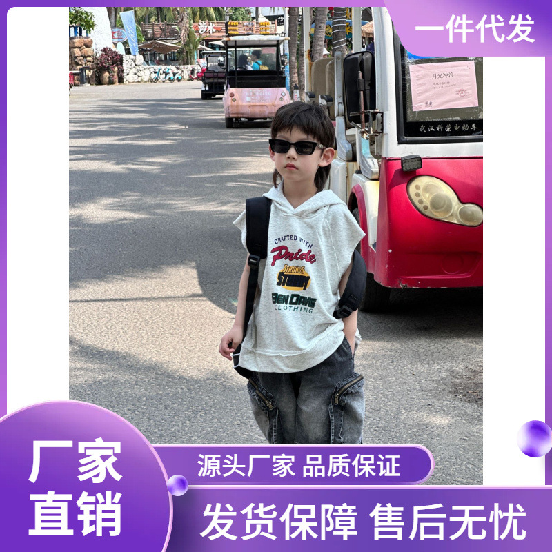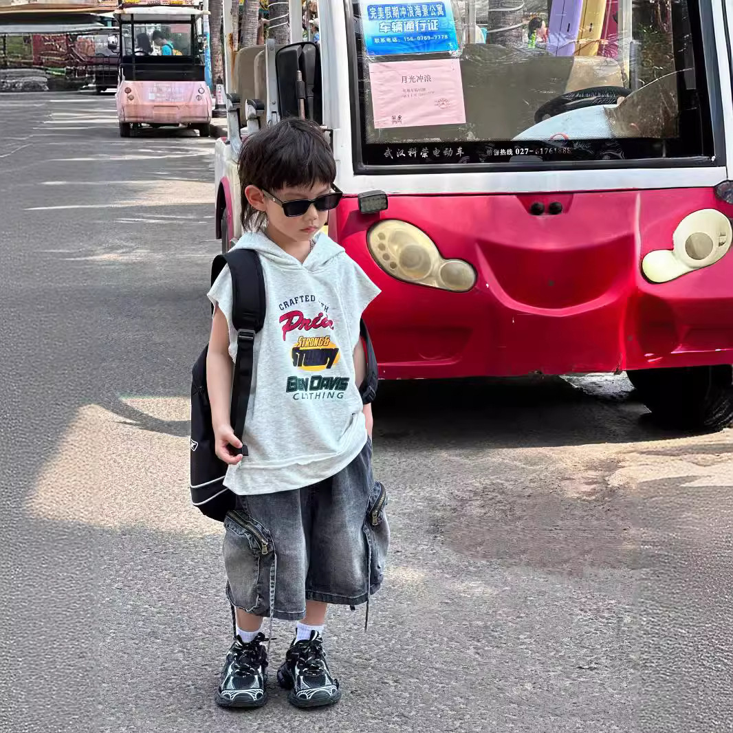 Tiru 2024 Summer New Arrival Korean-Style Boys' Letters American-Style Sleeveless Hooded Sweatshirt Children's All-Match Trendy Top