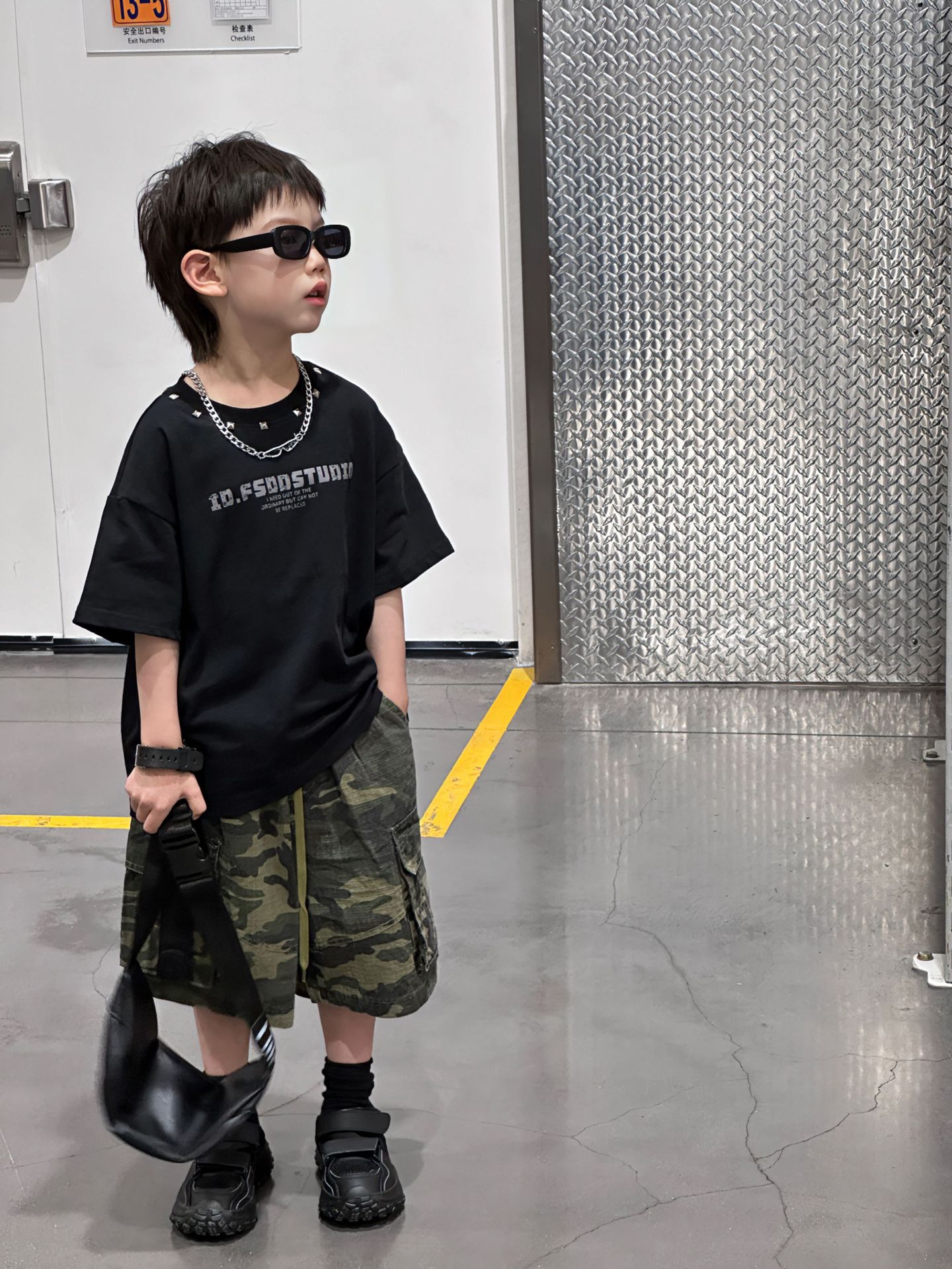 | nameOriginal | Tiru 2024 Summer New Korean Style Boys All-match Rivet Letter Design Sense Short-sleeved Children's T-shirt Top |