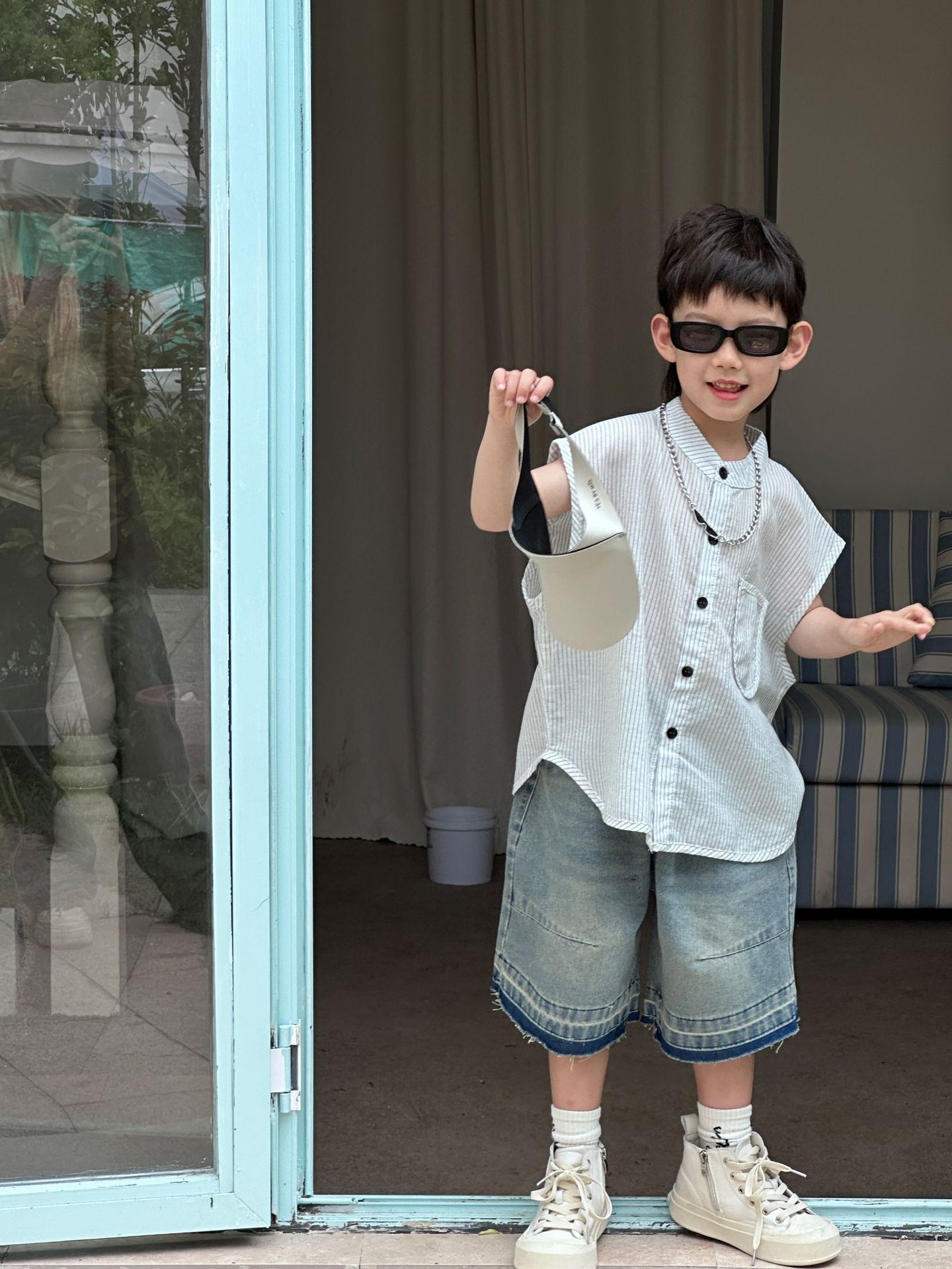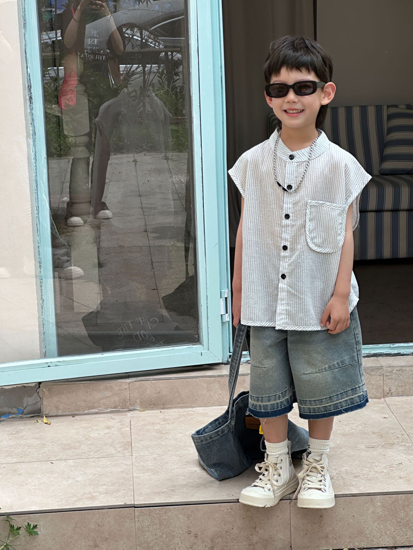 | nameOriginal | Tiru 2024 Summer New Korean Style Boys' Design All-match Vertical Striped Sleeveless Shirt Children's Top Trendy |