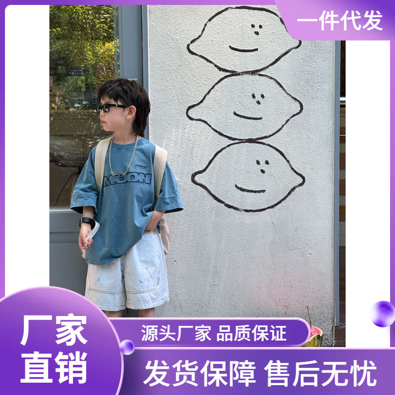| nameOriginal | Tiru 2024 Summer New Korean Style Boys' Fashion All-match Design Sense Fried Washed Letter T-Shirt Children's Short-sleeved Trendy |