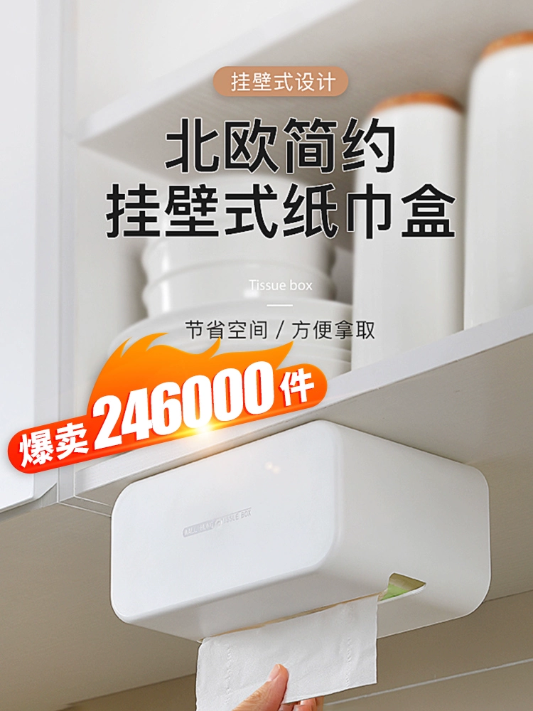 Tissue box paper box kitchen home living room dining room towel creative wall-mounted tissue storage box bedroom punch-free