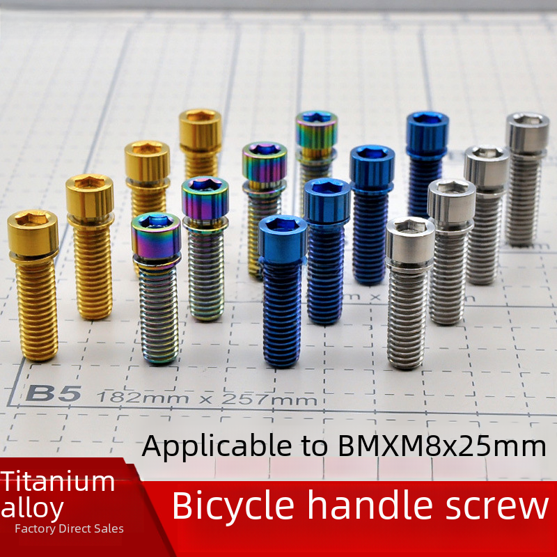 | nameOriginal | Titanium alloy handle vertical color screw for BMX bicycle handle vertical riding bicycle spare parts m8x25 |