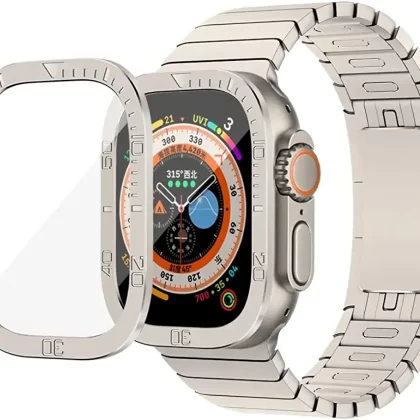 | nameOriginal | Dado Metal Bezel frame + Tempered Glass screen protector Compatible with Apple Watch 8 Ultra 49mm, Bezel with numbers and full screen coverage (Titanuim) |