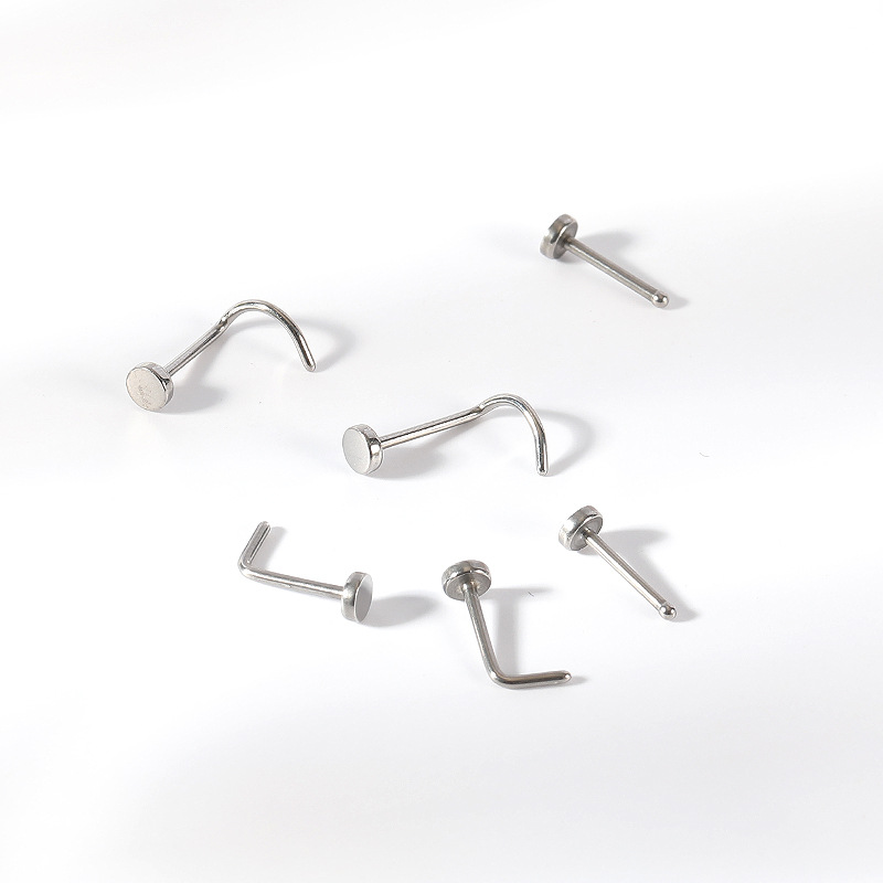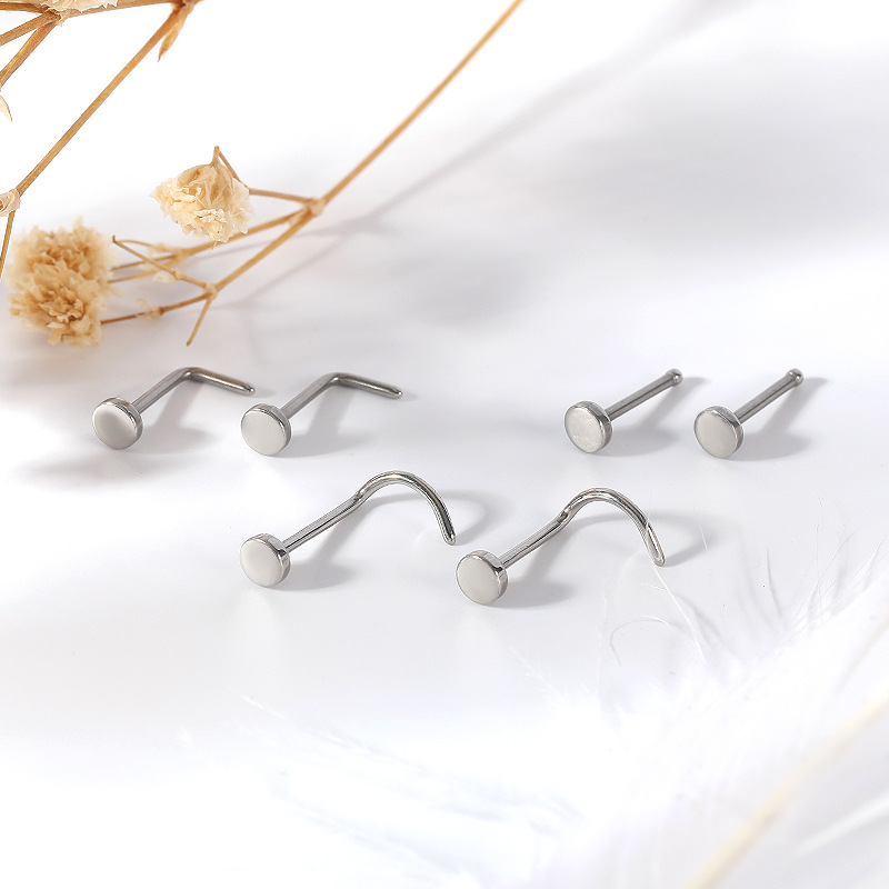 | nameOriginal | Titanium G23 round cake S-type nose nail L-type titanium alloy nose bend puncture nose decoration simple all-match body puncture |