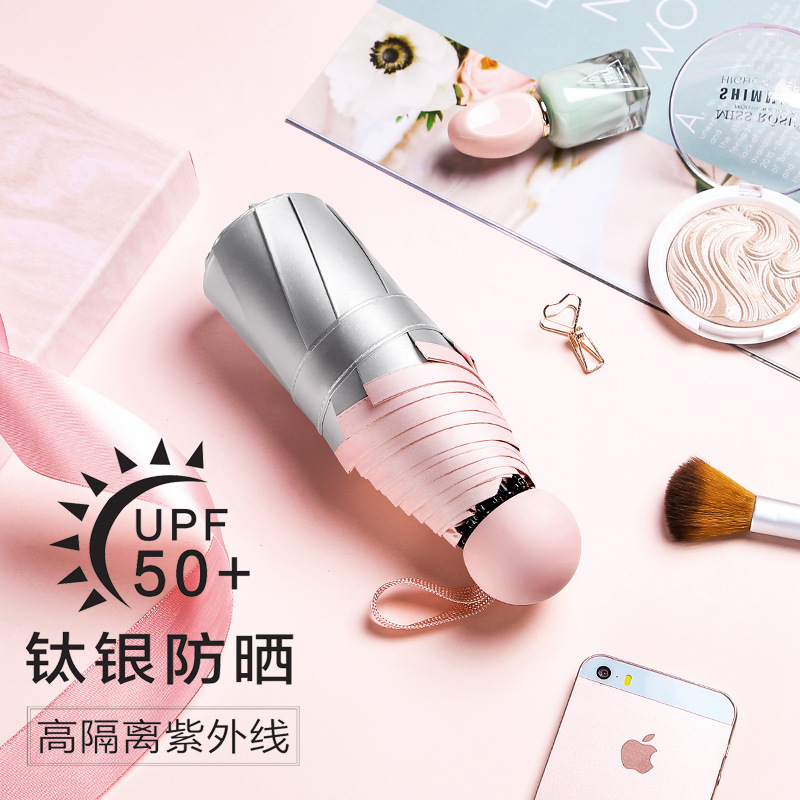 | nameOriginal | Titanium silver plastic sun umbrella women's summer sun protection strong anti-UV manual mini five-fold ultra-light and compact |