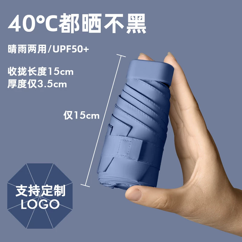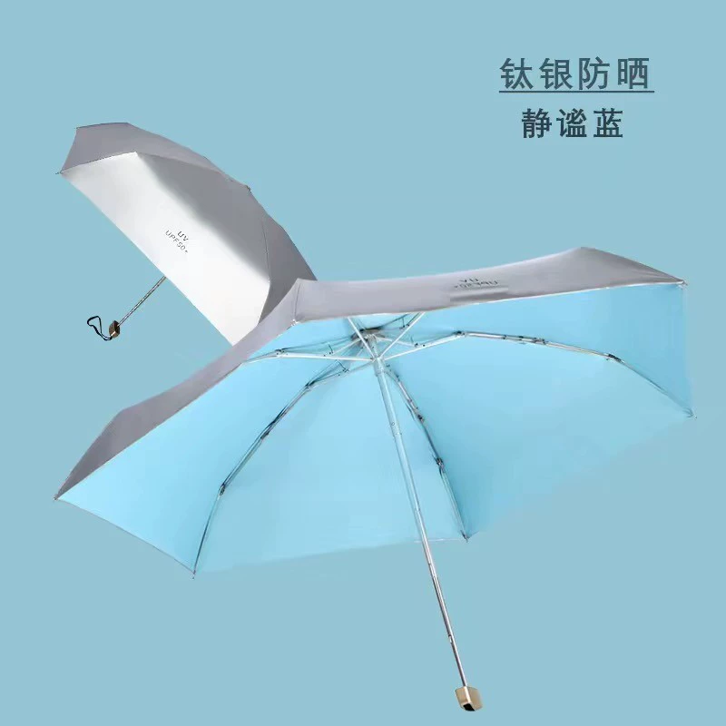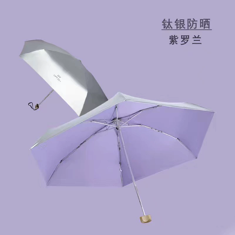 Titanium Silver UPF50+ Compact Portable Folding Sun Umbrella