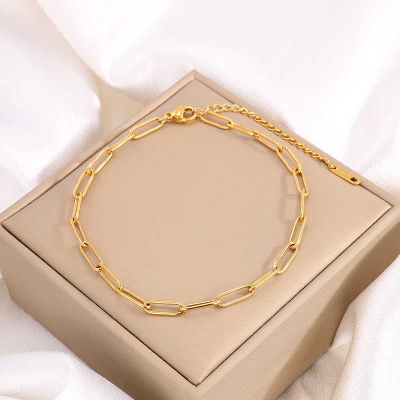 Titanium steel anklet girls high-end fashion European and American long buckle 18K gold-plated high-end generous temperament does not fade anklet