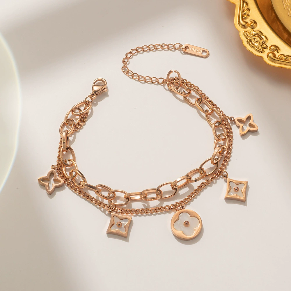 | nameOriginal | Titanium steel bracelet does not fade gold four-leaf clover bracelet mother-of-pearl bracelet for women European and American style fashion light luxury forest series |