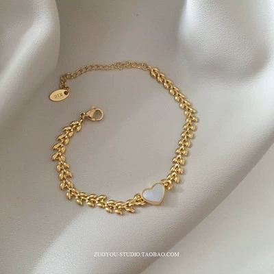 Titanium steel does not fade INS trendy niche light luxury high-end round caladium wheat ear 18K gold temperament versatile bracelet for women
