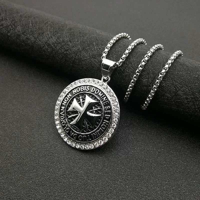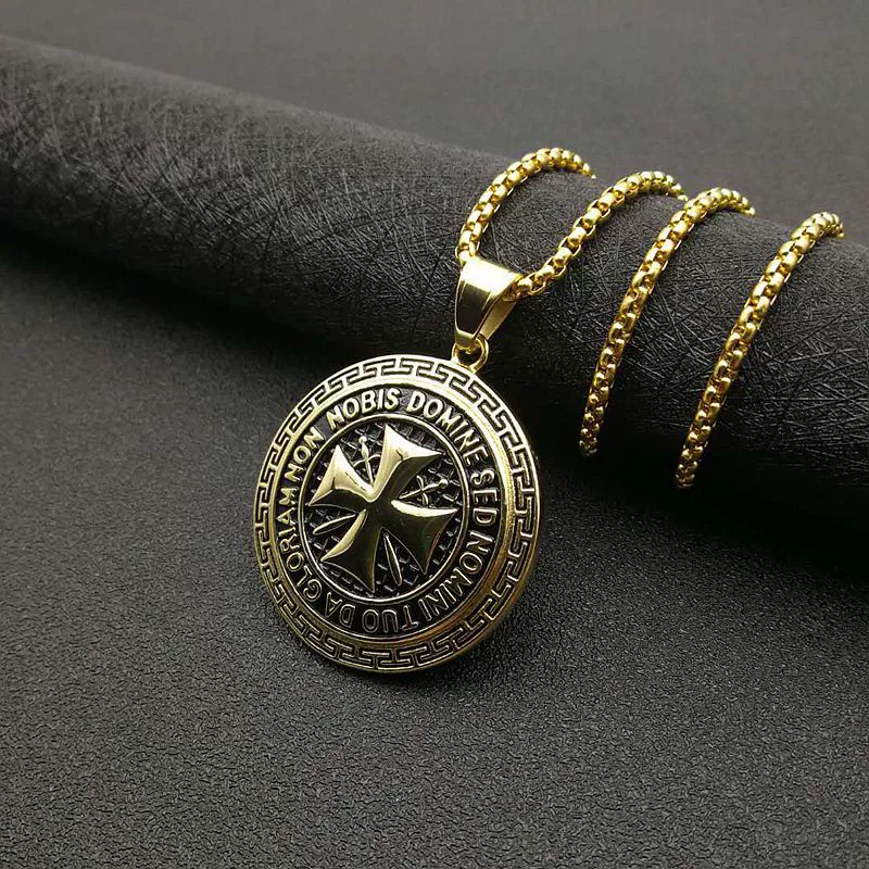 | nameOriginal | Titanium steel gold-plated diamond Knights Templar pendant necklace European and American hip-hop jewelry stainless steel creative versatile personality |