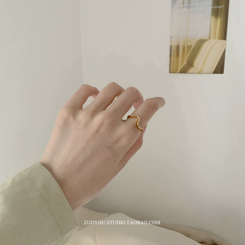 | nameOriginal | Titanium steel high color retention INS trendy niche retro golden wave pattern fashionable temperament high-end versatile open ring |