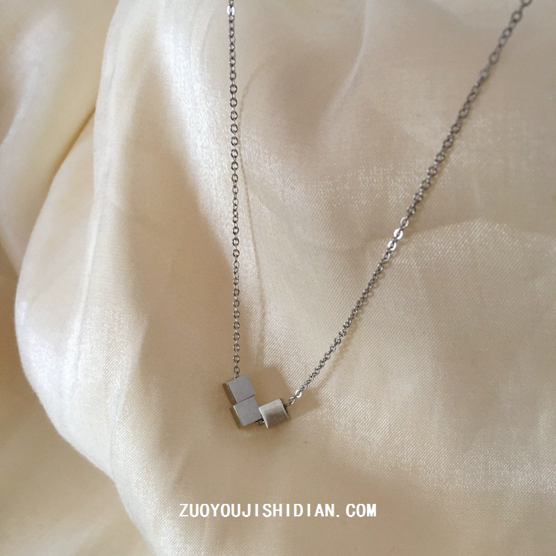 Titanium steel non-fading ins niche geometric square necklace for women, Korean version, simple temperament, versatile and trendy best friends