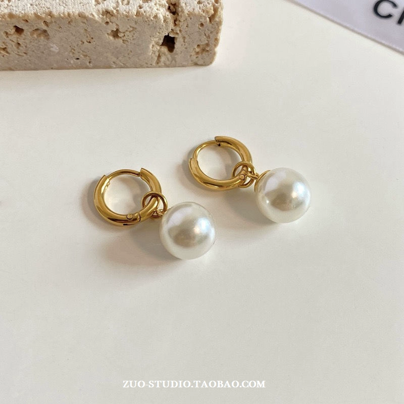 | nameOriginal | Titanium steel non-fading INS trendy French retro pearl pendant earrings for women, versatile and high-end 2023 new earrings |