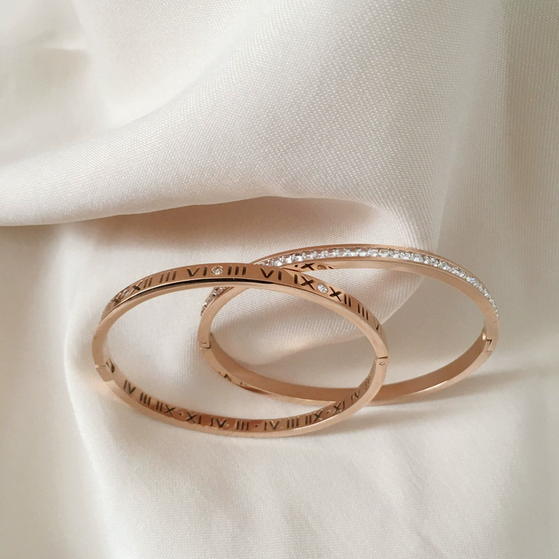 Titanium steel does not drop color ins, tide niche minimalist Roman diamond inlaid, exquisite, fashionable versatile golden lady bracelet