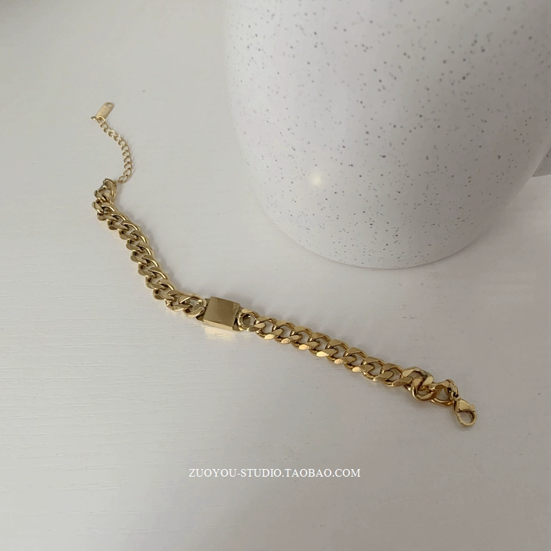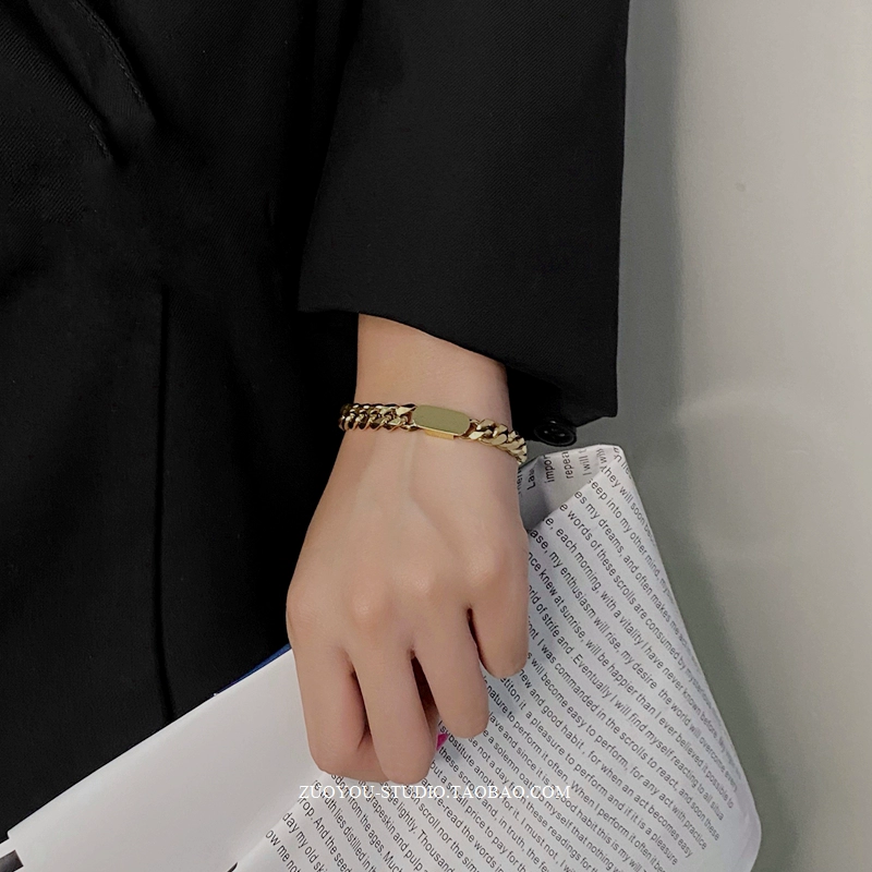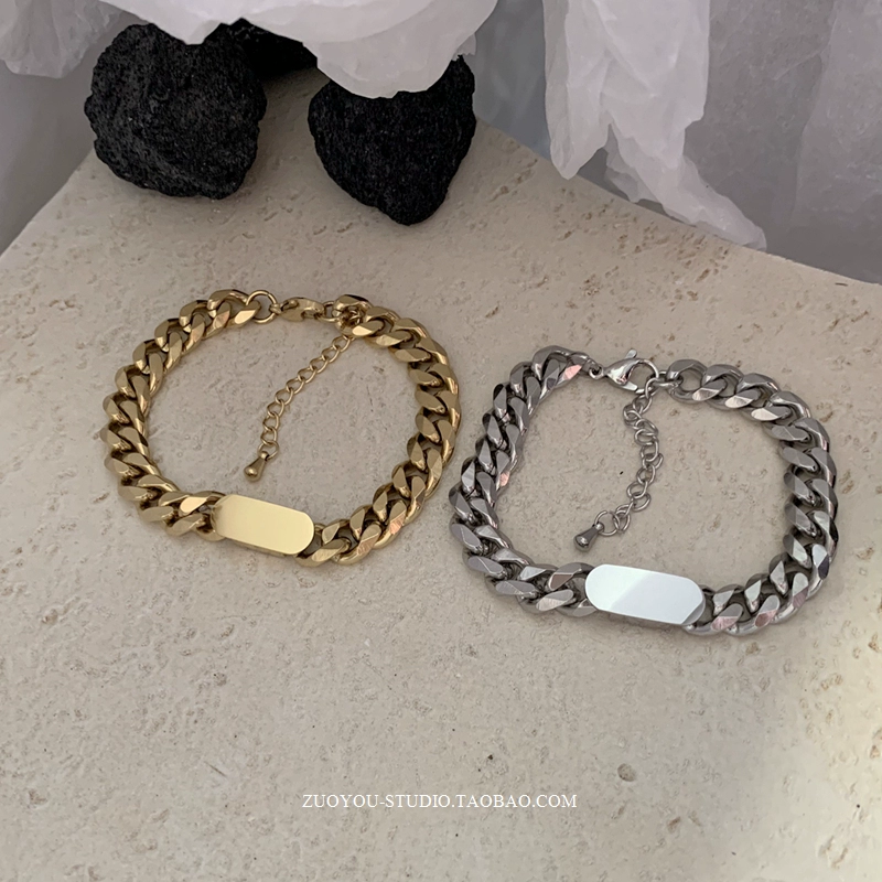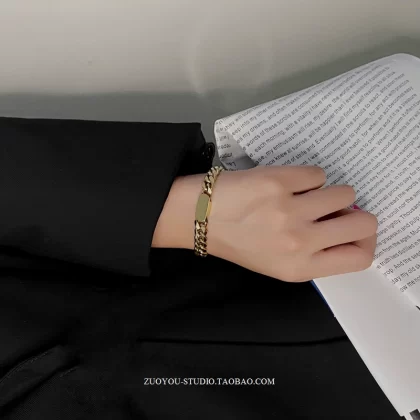| nameOriginal | Titanium steel non-fading niche high-end gold wide chain bracelet INS trendy simple retro versatile couple bracelet |