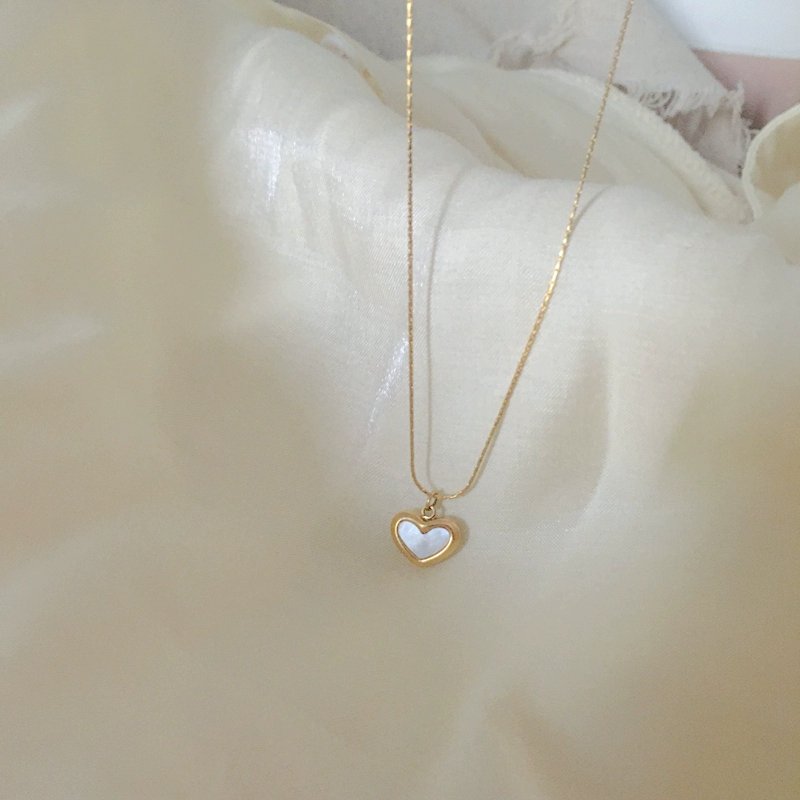| nameOriginal | Titanium steel non-fading retro literary and artistic love element golden mother-of-pearl face niche high-end peach heart brand necklace for women |