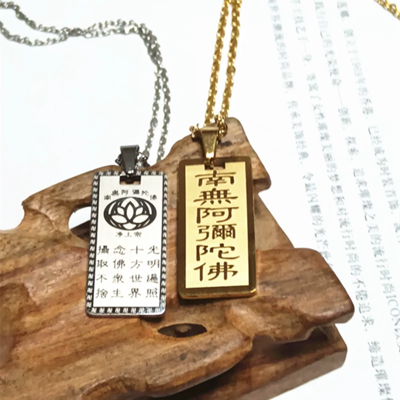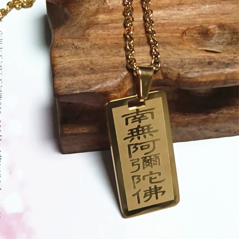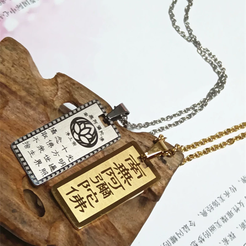 | nameOriginal | Titanium steel retro palace Nanwu Amitabha six-character Hongming pendant couple double-sided Buddha card pendant mantra necklace |