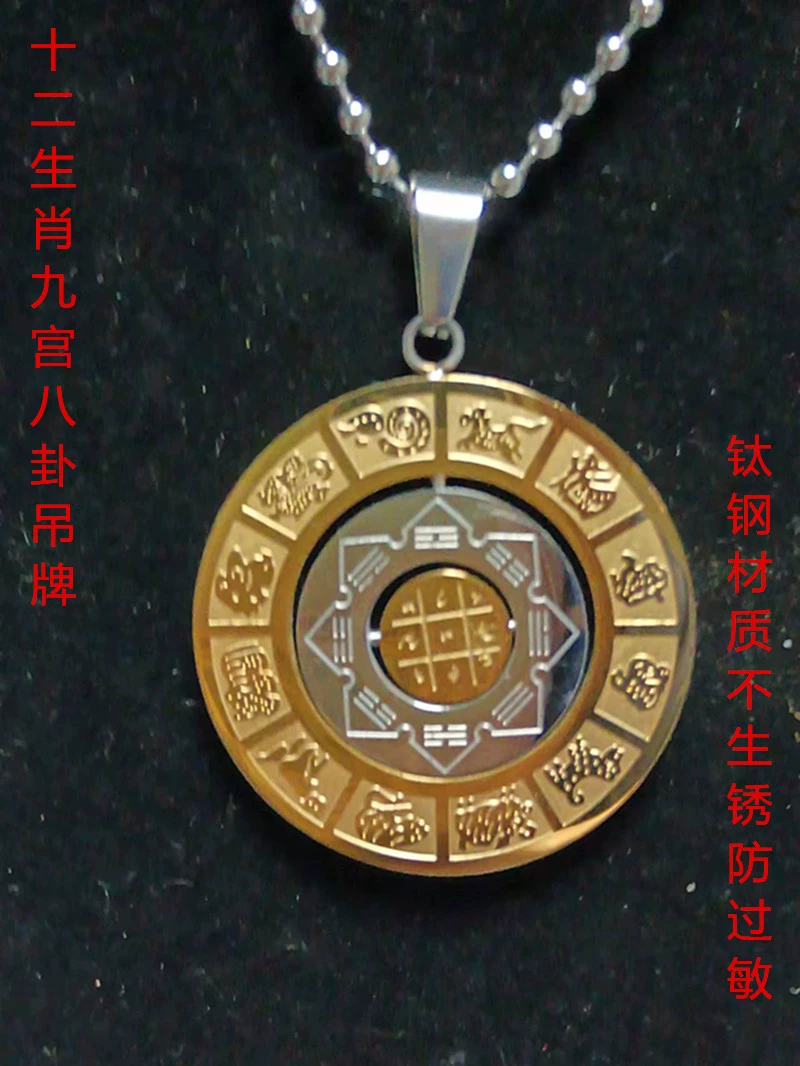 Titanium Steel Twelve Constellations Retro Double-Sided Rotatable Golden Nine Palaces Bagua Diagram Non-Fading Hypoallergenic Couple Necklace
