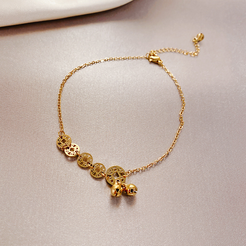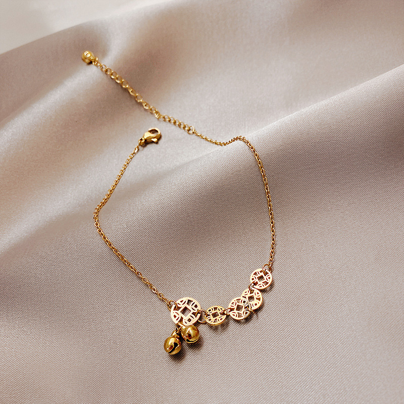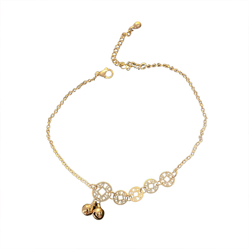 | nameOriginal | Titanium steel vintage copper coin anklet women's 2020 New Tide Bell antique sexy foot chain net popular simple niche design |