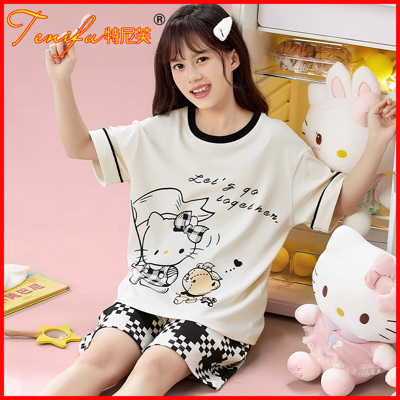 | nameOriginal | Tniff Short-sleeved Shorts Cotton Girls' Home Clothes Cotton Children's suit Summer Cartoon Pajamas for Small, Medium and Large Children |