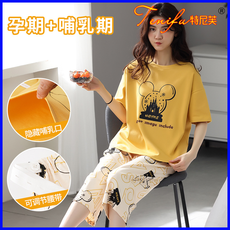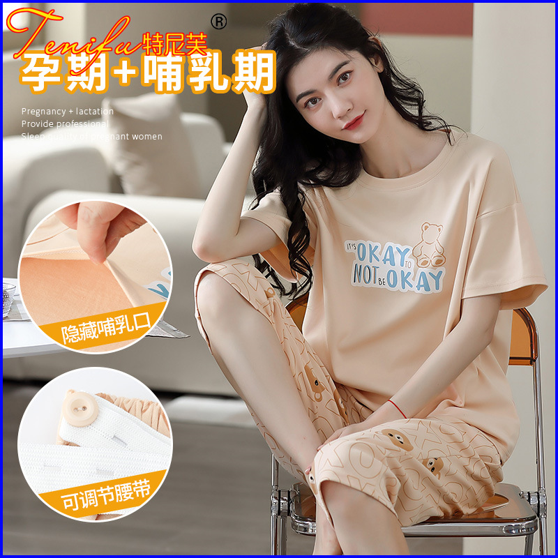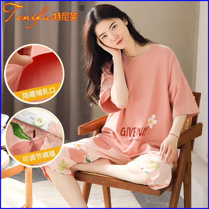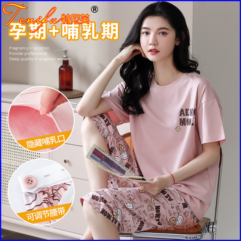 | nameOriginal | Tniv Pregnant Women's Pajamas Autumn and Spring Short-sleeved Pure Cotton Lactation Maternity Clothing Full Cotton Postpartum Outgoing 1511 |