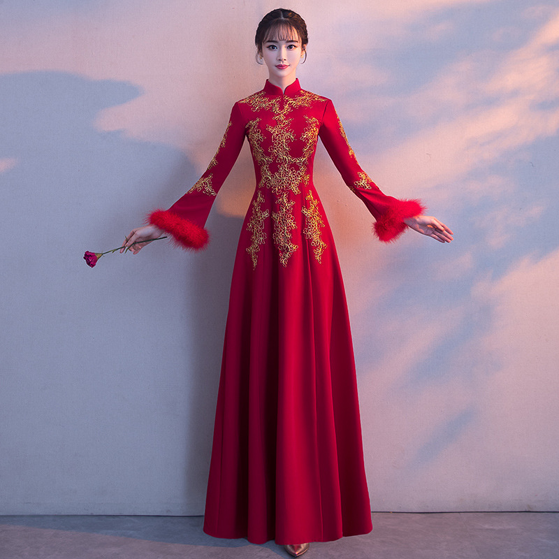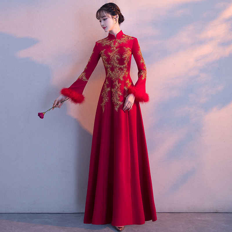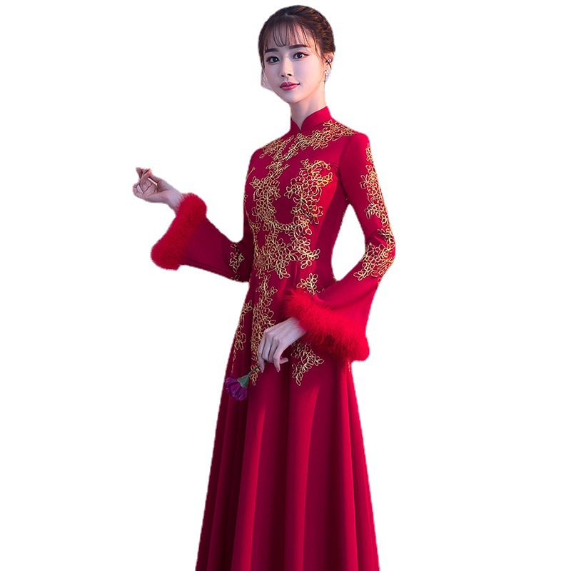 | nameOriginal | Toast Dress Bride Wedding Spring Spring Long Sleeve Long Red Cheongsam Chinese Style Chinese Style Dress Women's Slim Look |