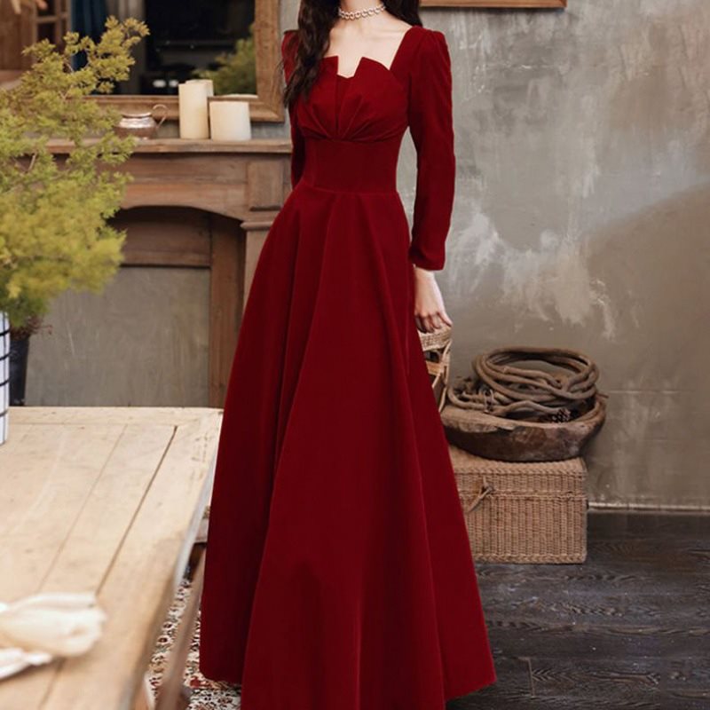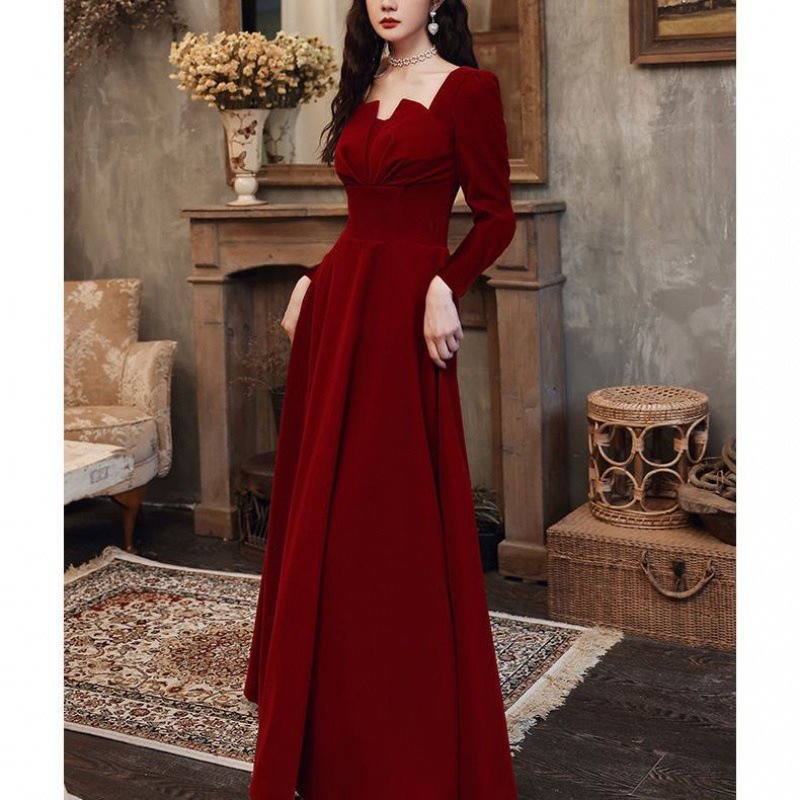 | nameOriginal | Toast Dress Large Size 2023 New Wine Red Bride Autumn Wedding Evening Dress Dress Usually Wearing Temperament Hot |