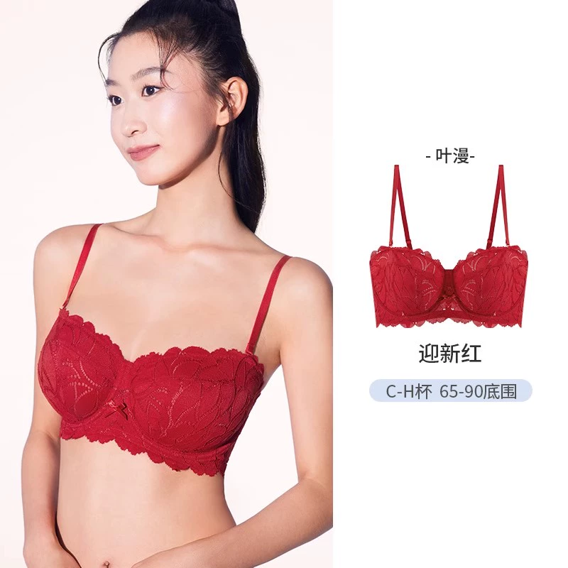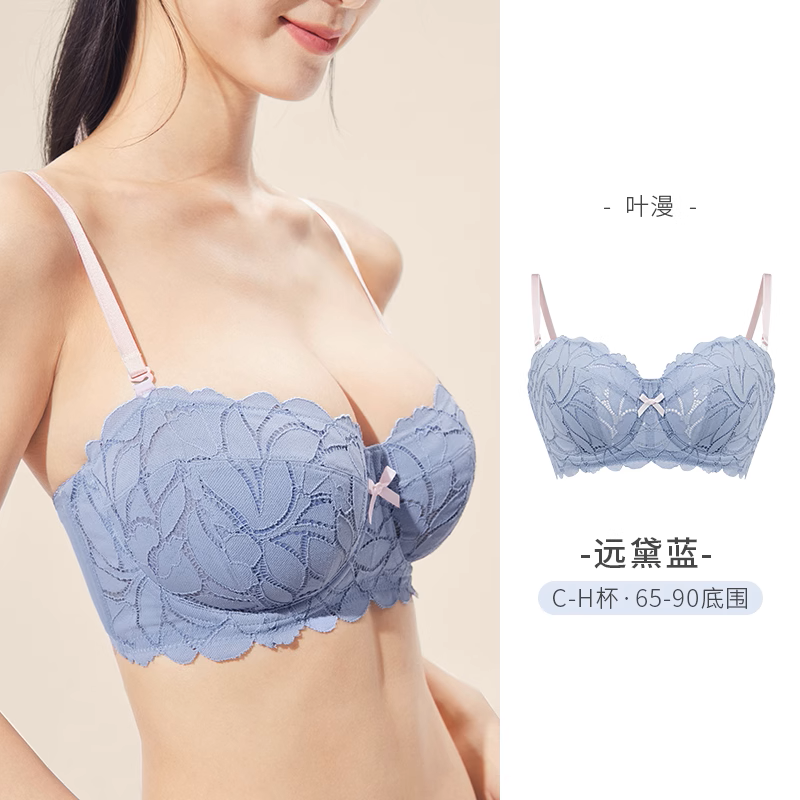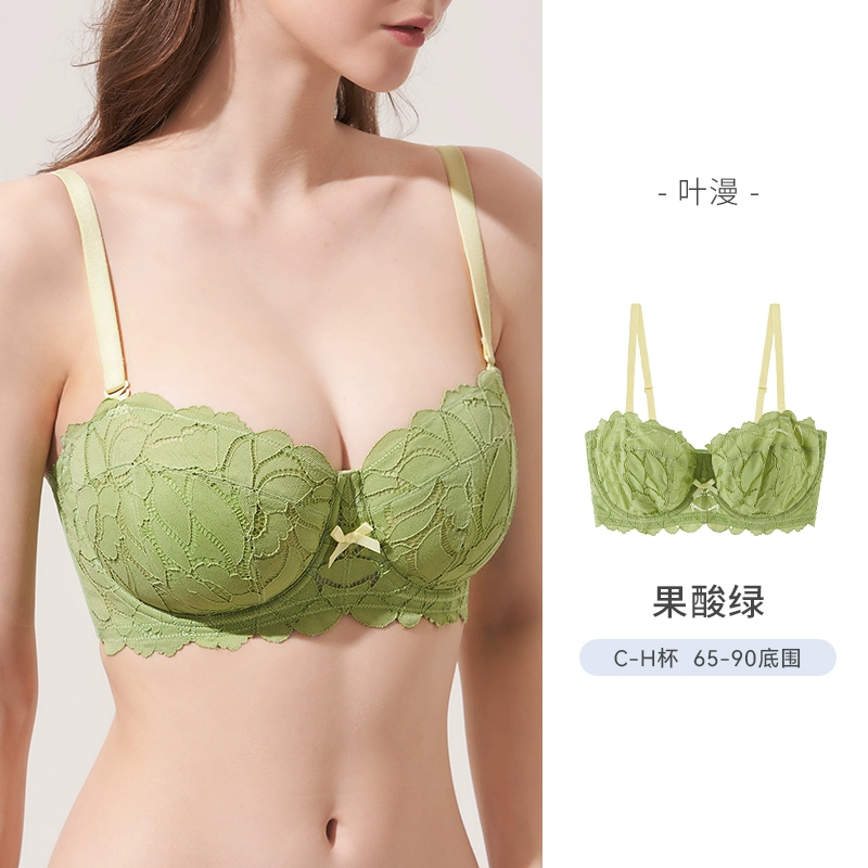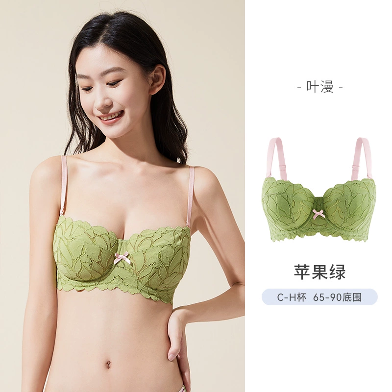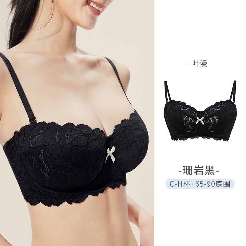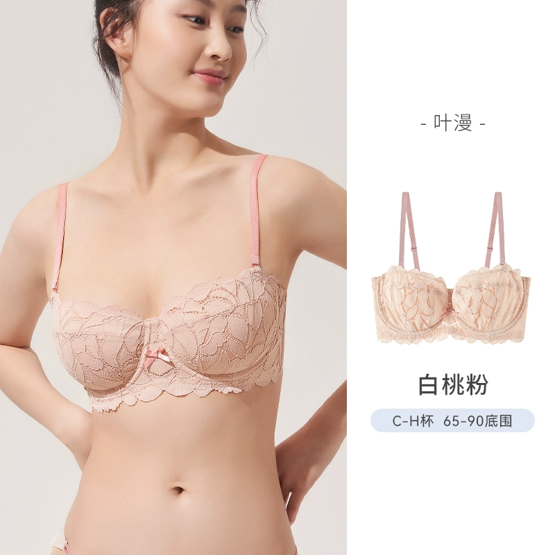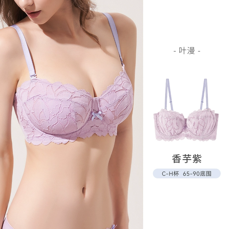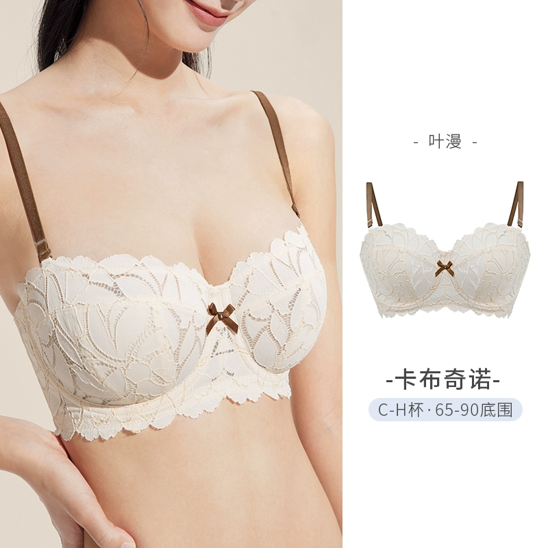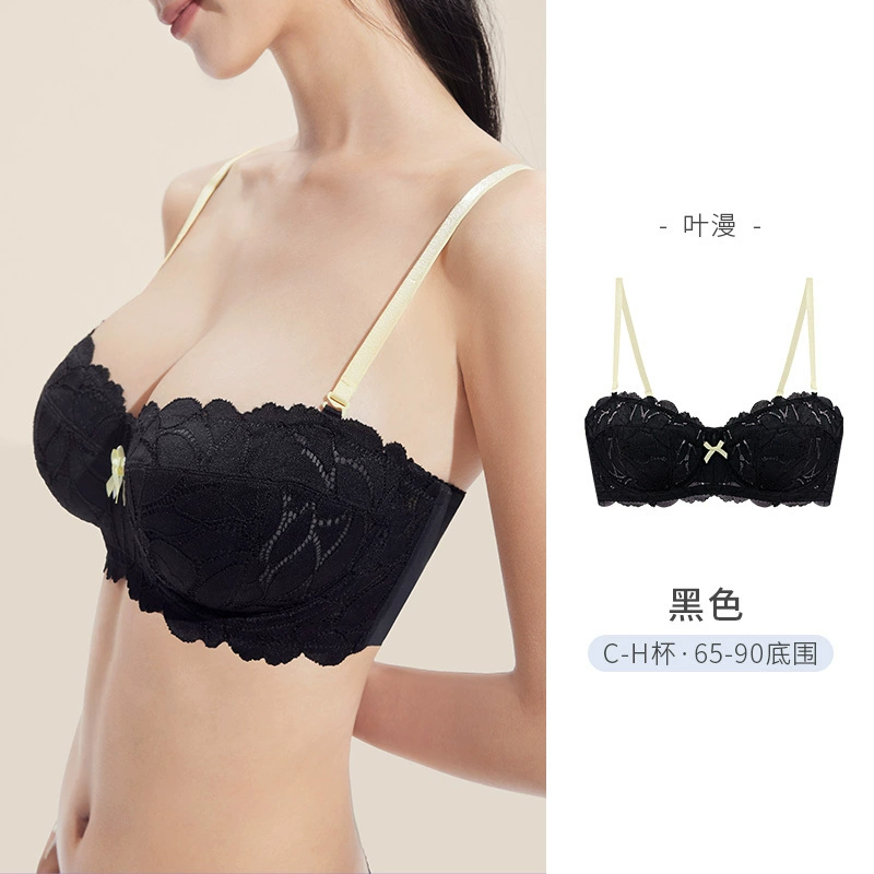 | nameOriginal | Toffee pie big breasts slimming ultra-thin half-cup bra Yeman contrasting color removable shoulder straps anti-bump lace underwear for women |