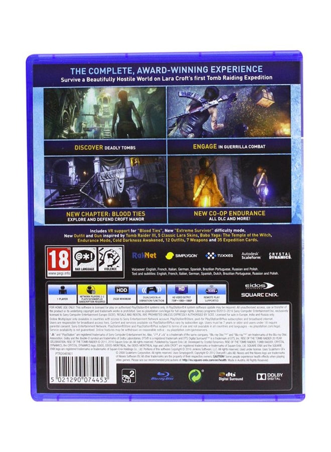| nameOriginal | Rise Of The Tomb Raider : 20 Year Celebration (Intl Version) – Action & Shooter – PlayStation 4 (PS4) |