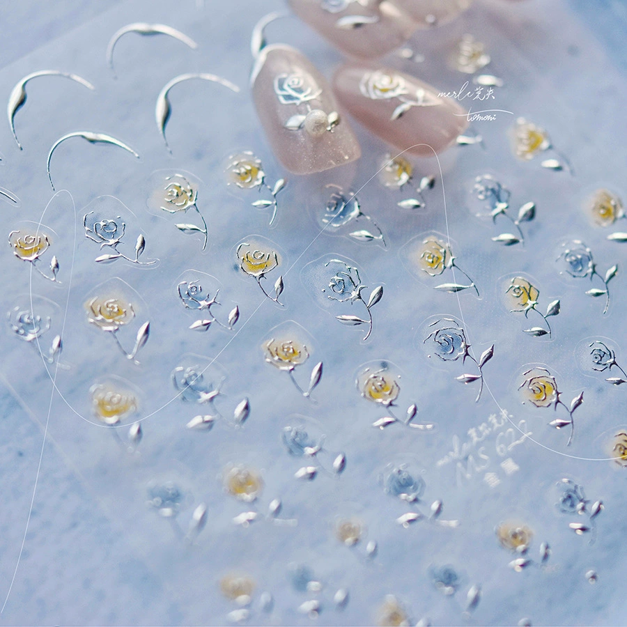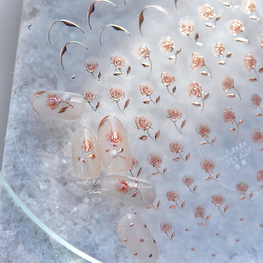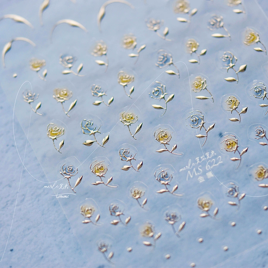 | nameOriginal | tomoni bronzing rose nail art stickers retro gold silver rose stickers 5D three-dimensional relief decals |