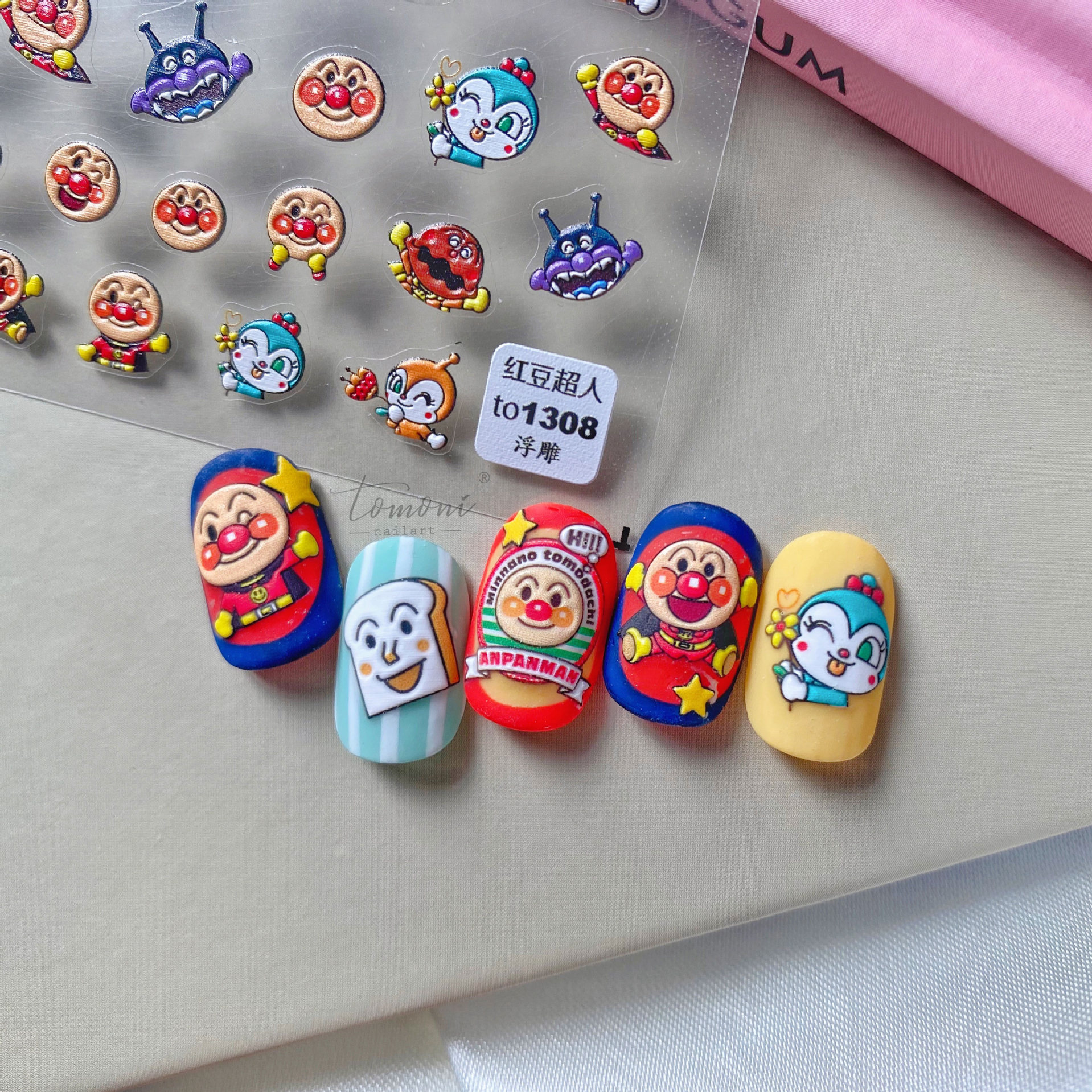 | nameOriginal | tomoni relief 1308 hot adhesive cute nail stickers Japanese stickers 5d nail stickers red bean Superman |
