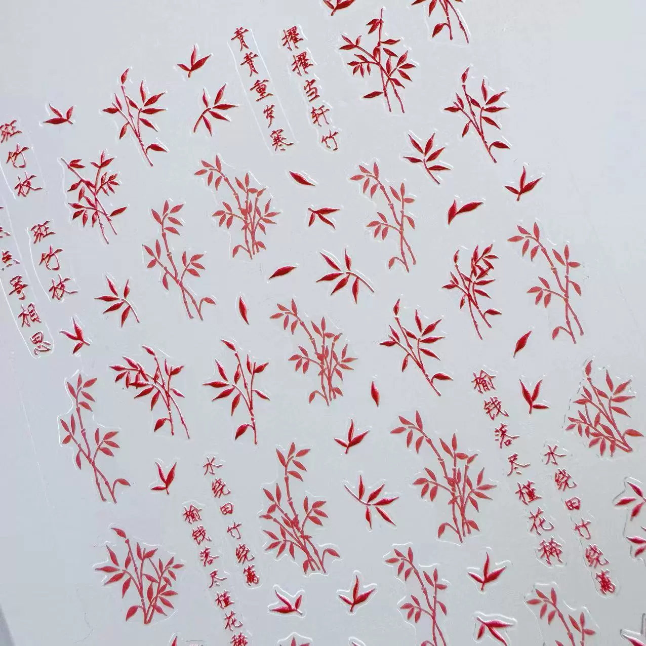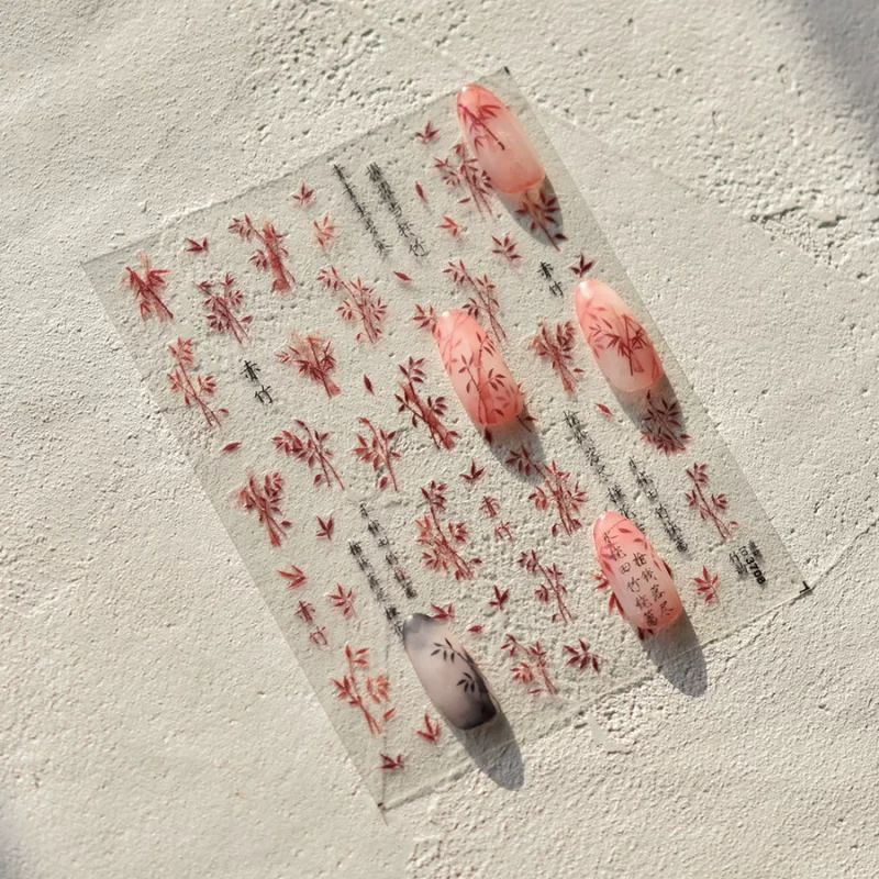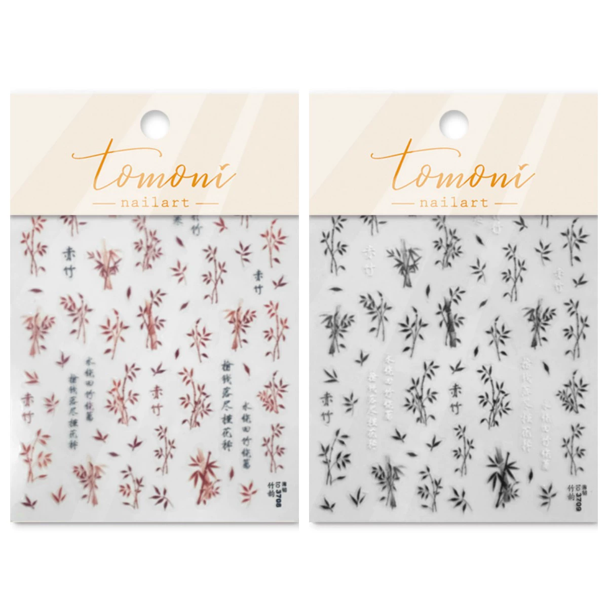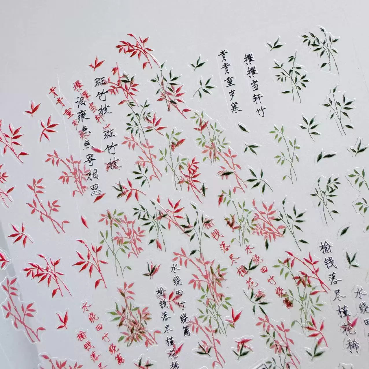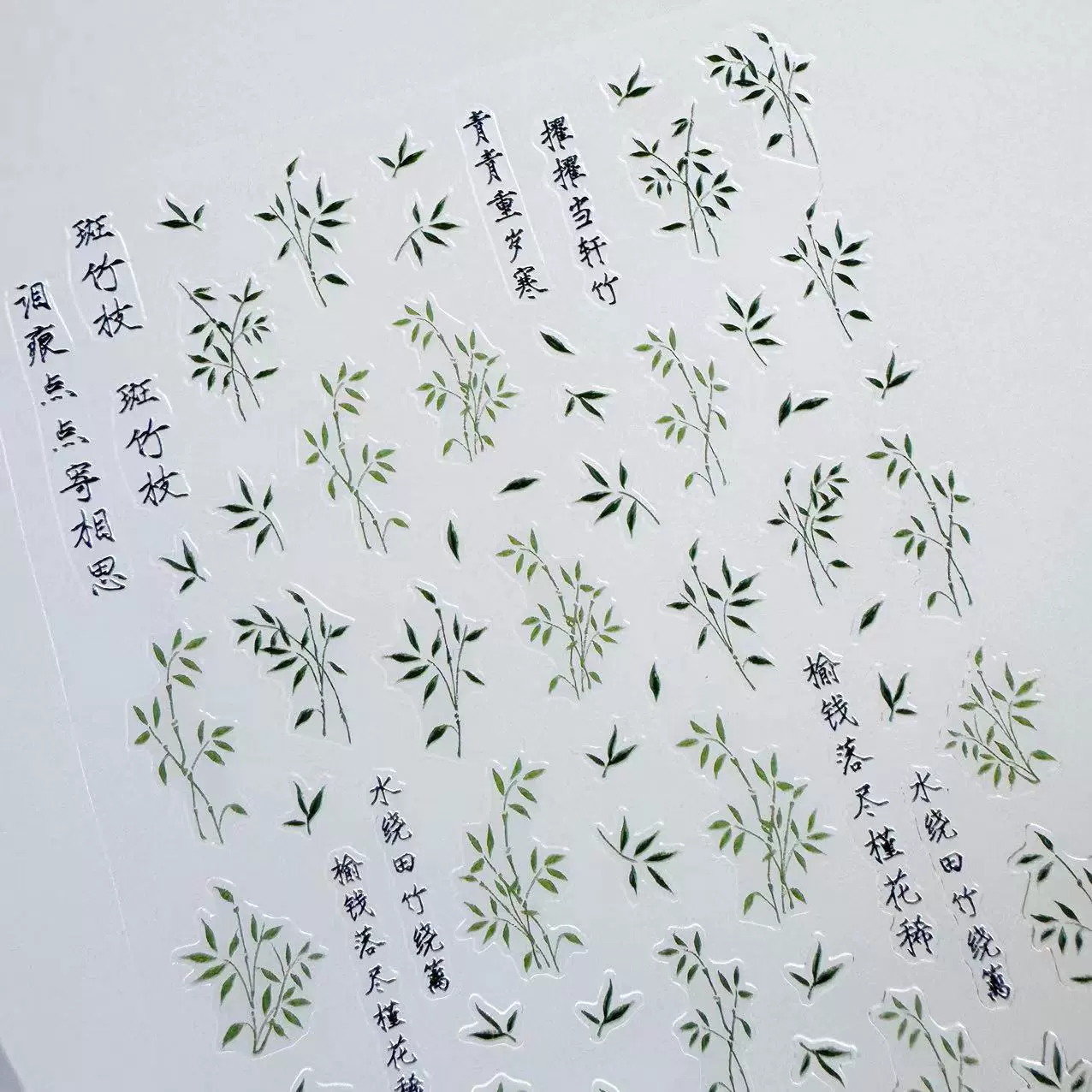 tomoni thin tough manicure stickers retro nail stickers Chinese style bamboo rhyme ancient style ink back glue ancient poetry handbook stickers