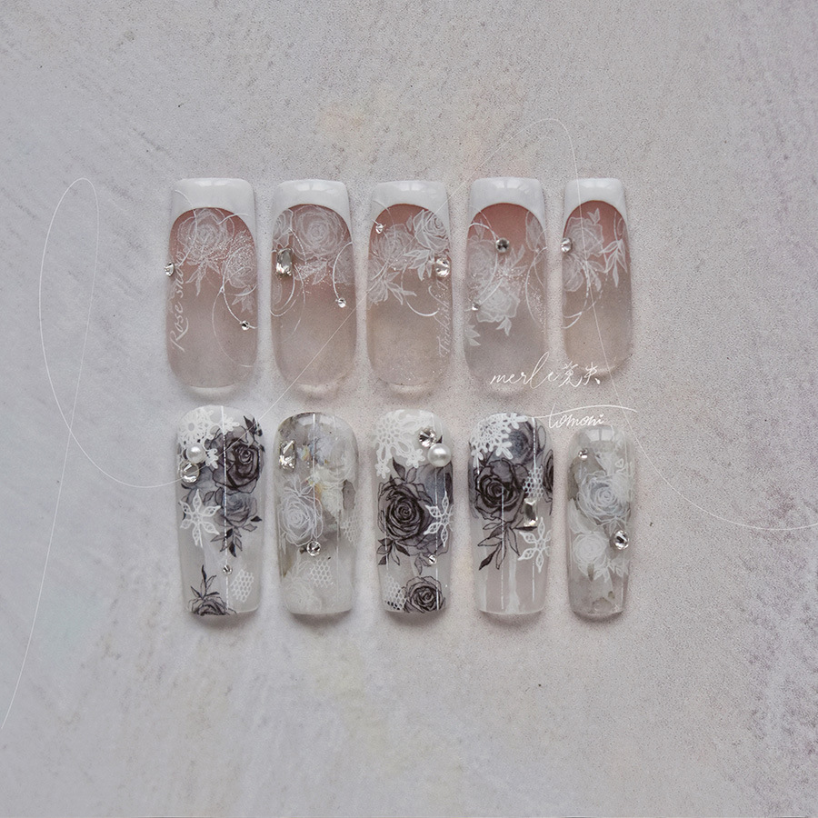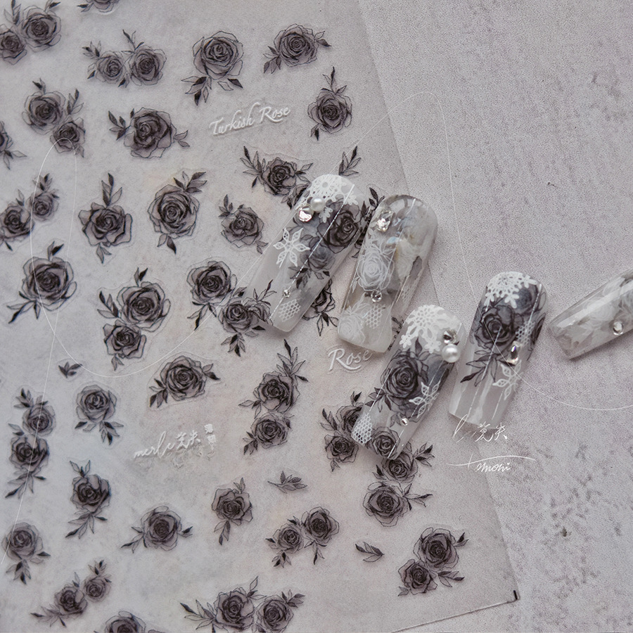 | nameOriginal | tomoni thin tough nail stickers no loss cooperation Japanese retro nail stickers wholesale black and white rose MS502 |