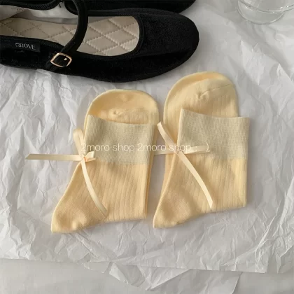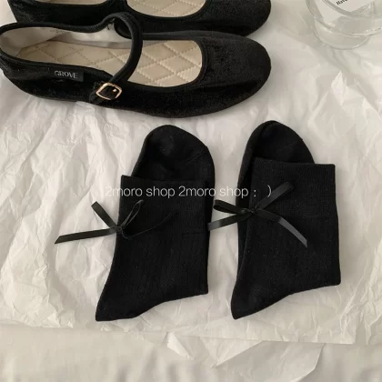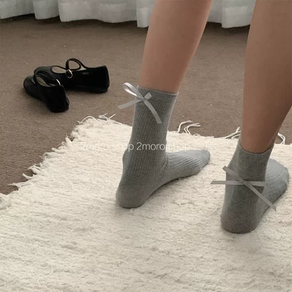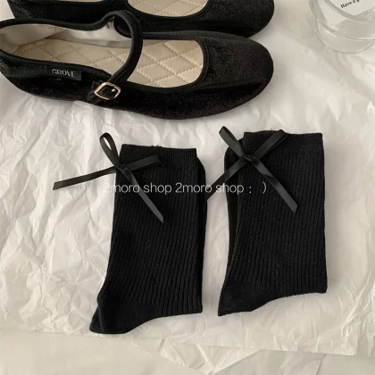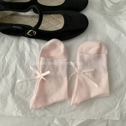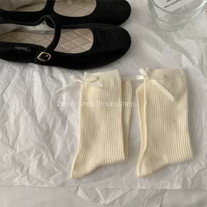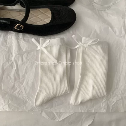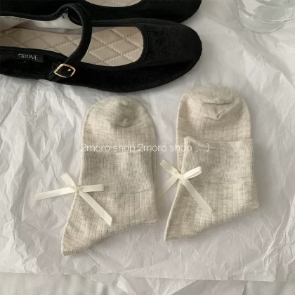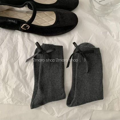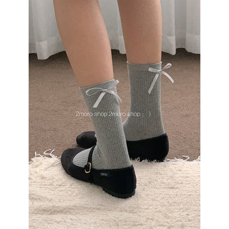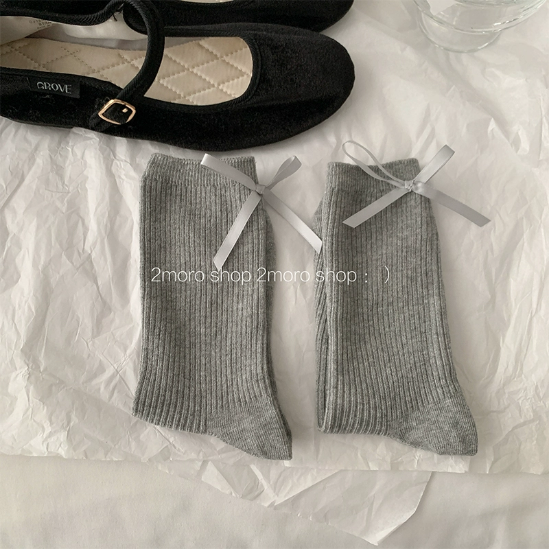 | nameOriginal | Tomorrow store ins Korean ballet heel bow girl miumiu ash pile socks jk ribbon mid-calf socks |