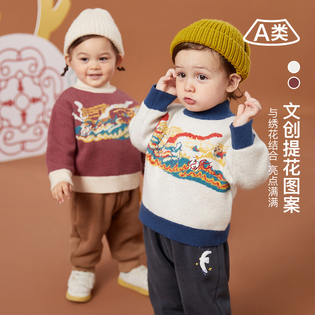 | nameOriginal | Tongbei children's clothing 2023 winter new children's half turtleneck sweater thickened velvet contrast color national style printed top winter |