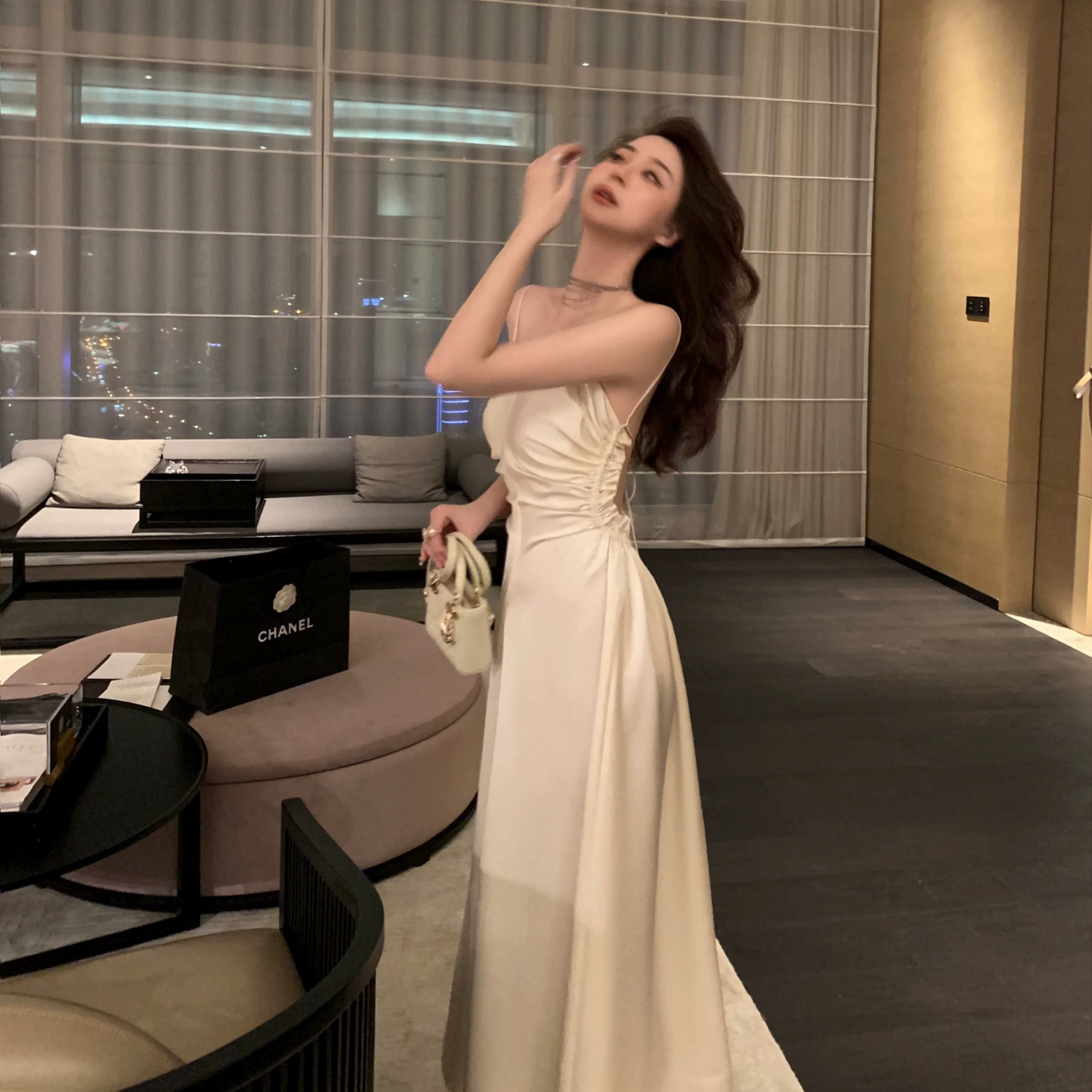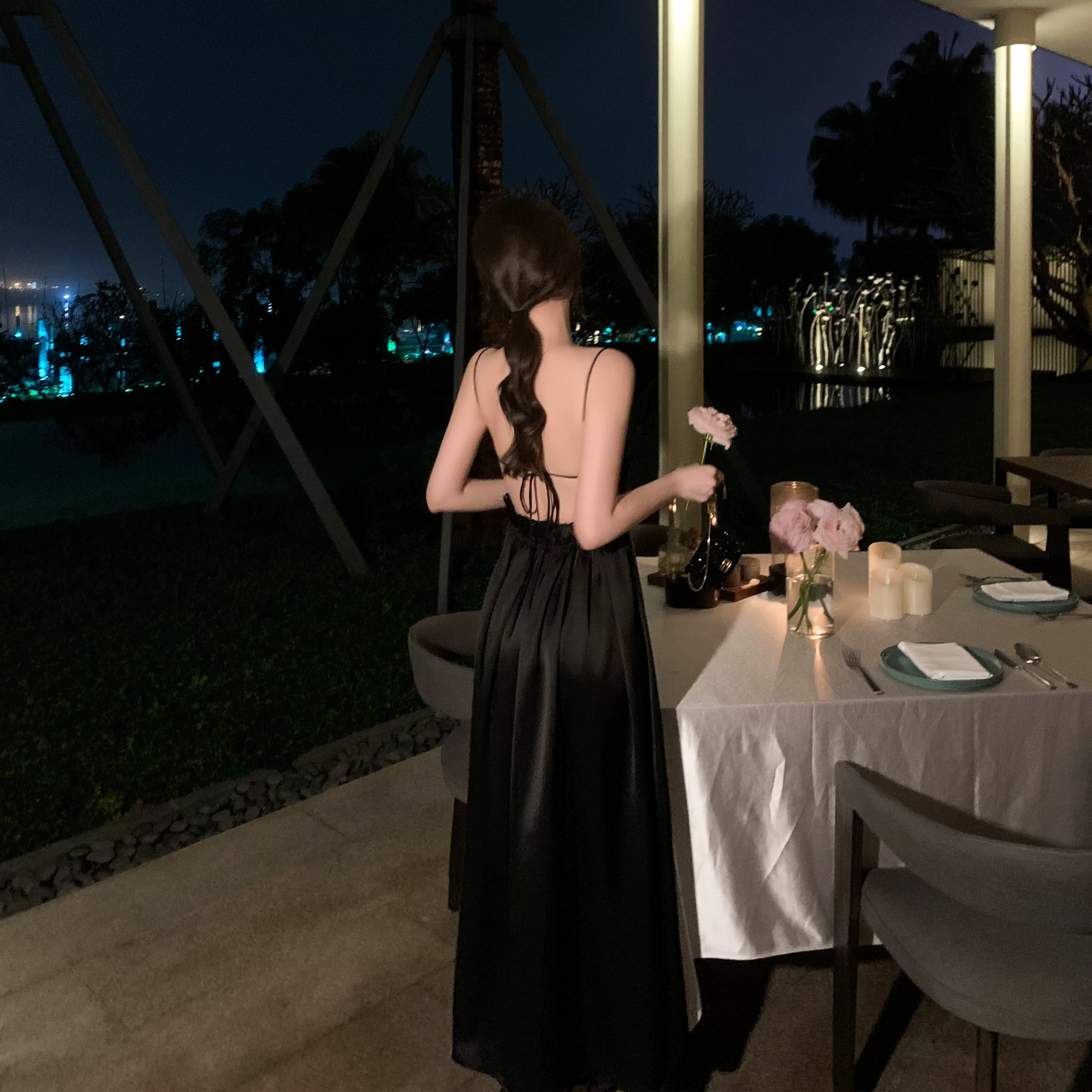 | nameOriginal | Tongse acetate satin sexy backless holiday sundress |