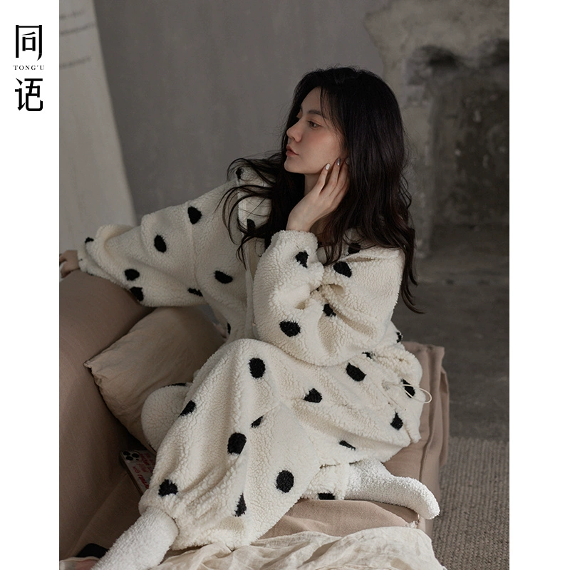 | nameOriginal | Tongyu pajamas for women in autumn and winter, coral velvet thickened suit, polka dot flannel, winter velvet warm home clothes |