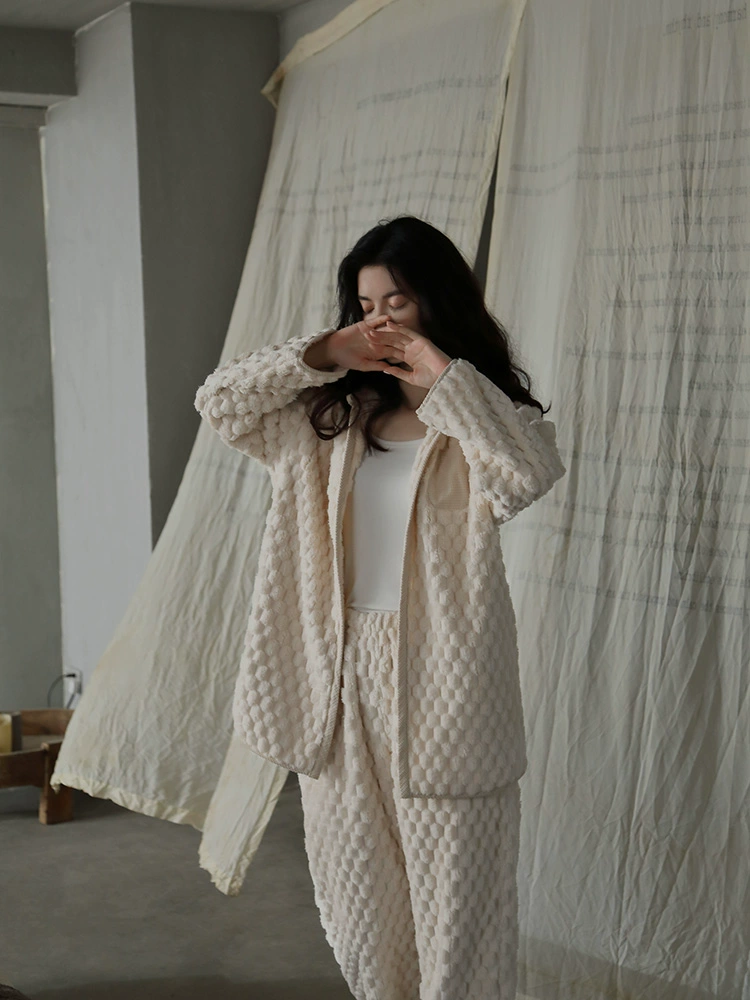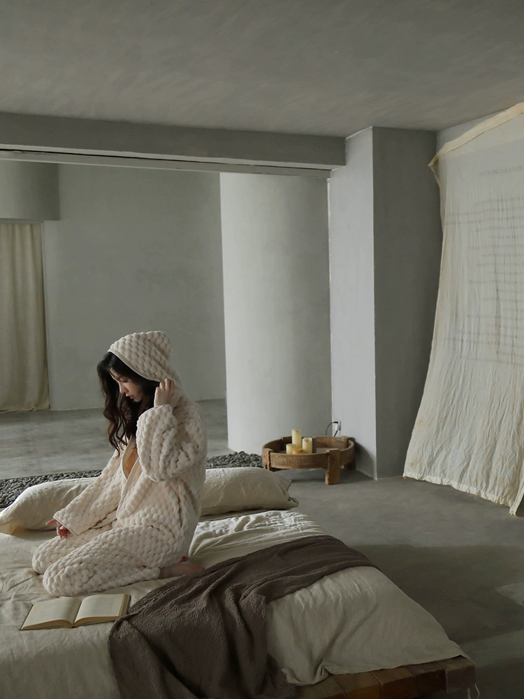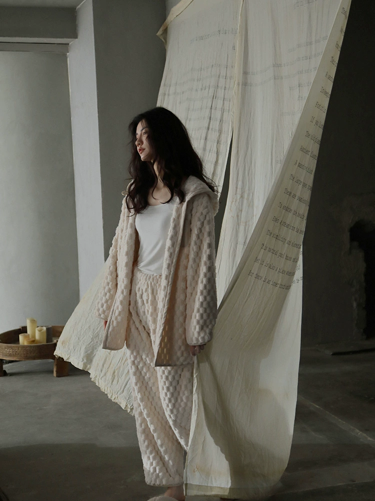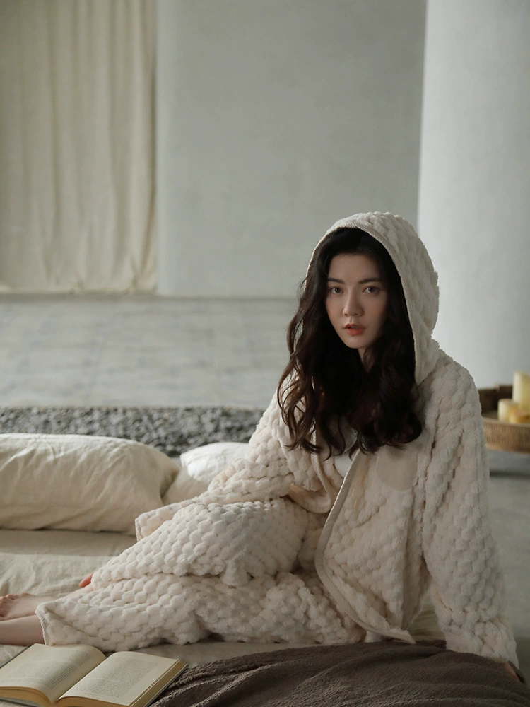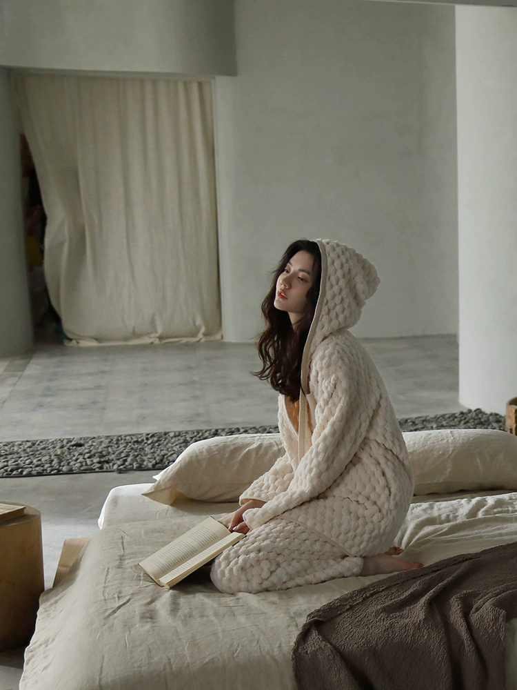 Tongyu Pajamas Women’s Winter Coral Fleece Plus Velvet Hooded Set Flannel Thickened Women’s Autumn and Winter Home Clothes