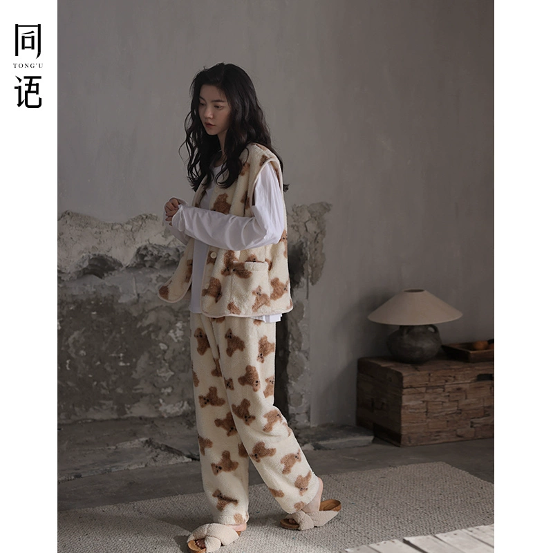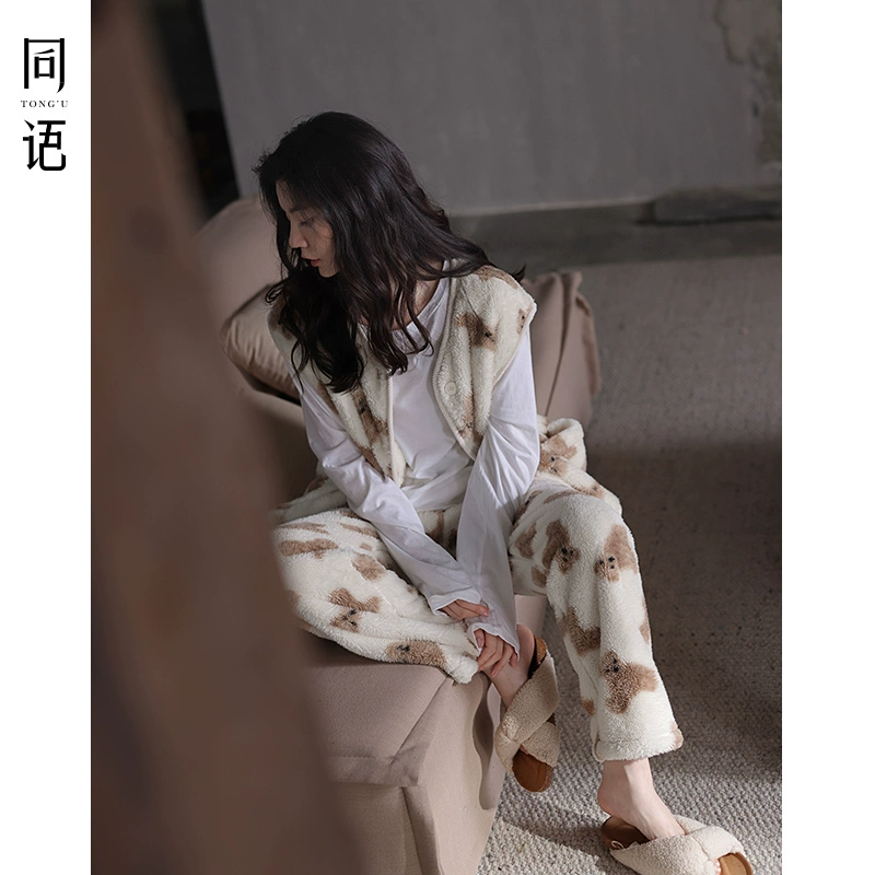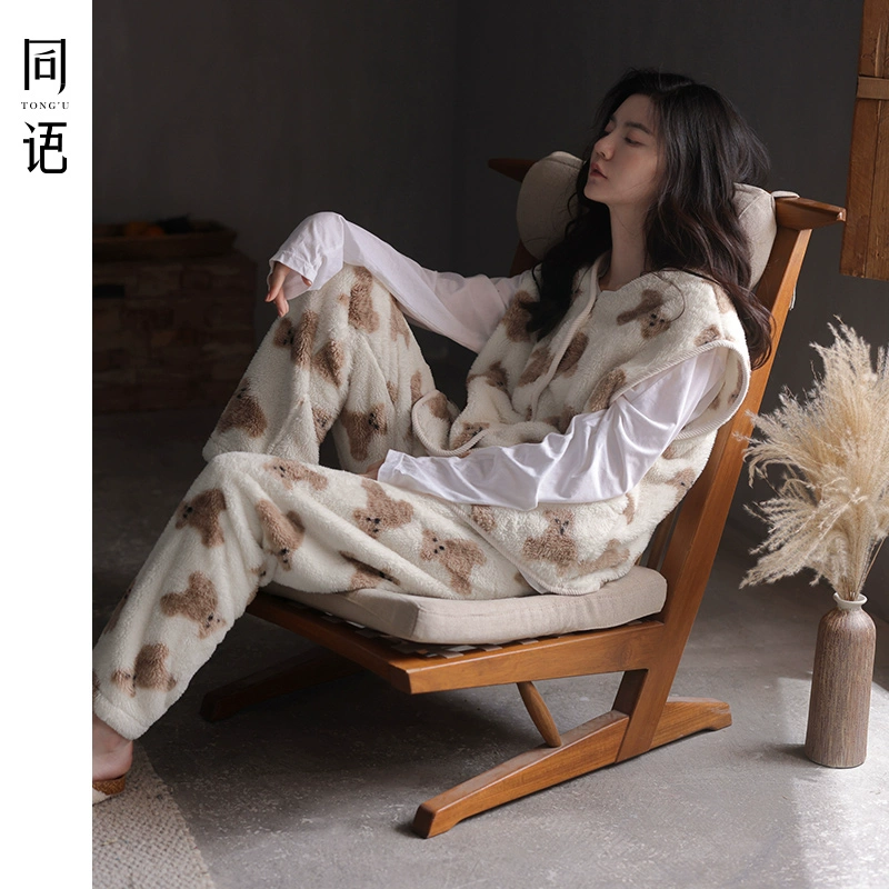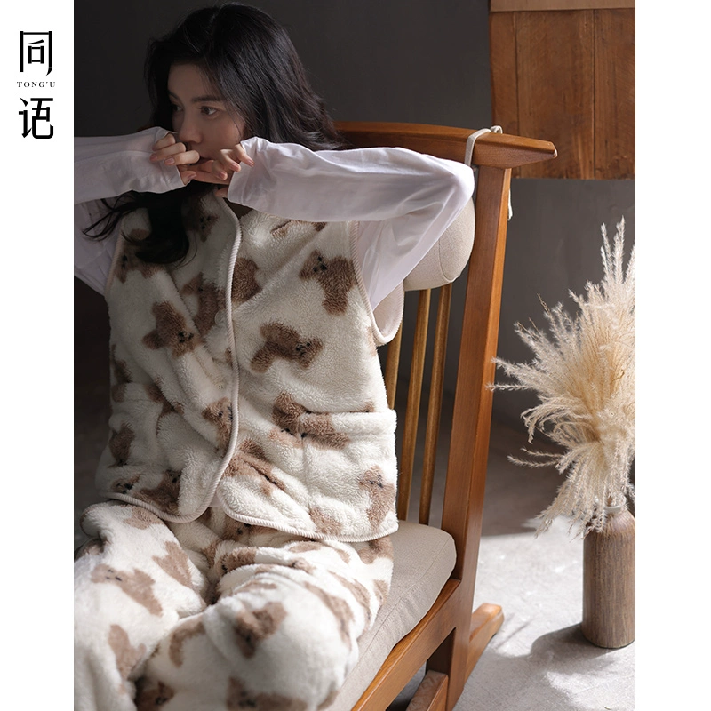 | nameOriginal | Tongyu winter pajamas for women, coral velvet thickened vest, home clothes, flannel and velvet bear, can be worn outside the suit |
